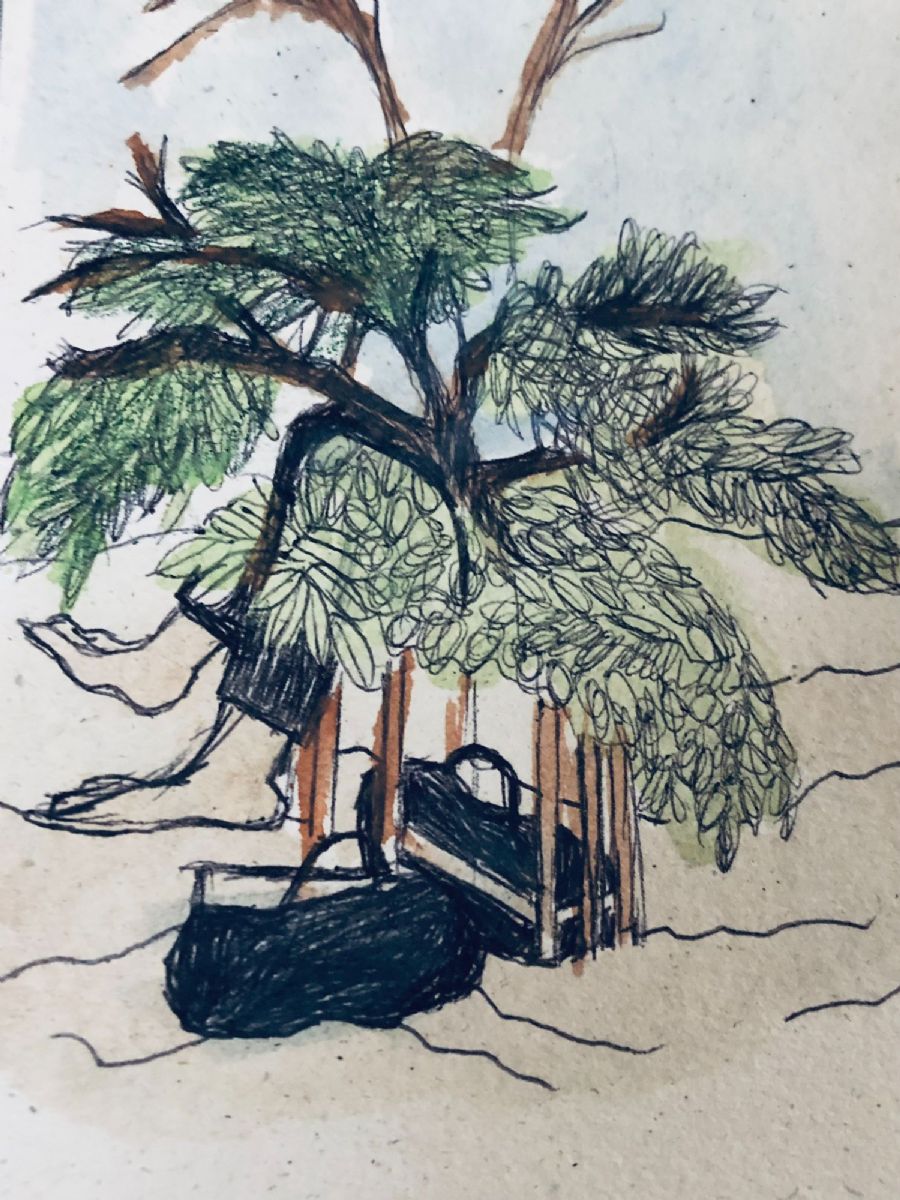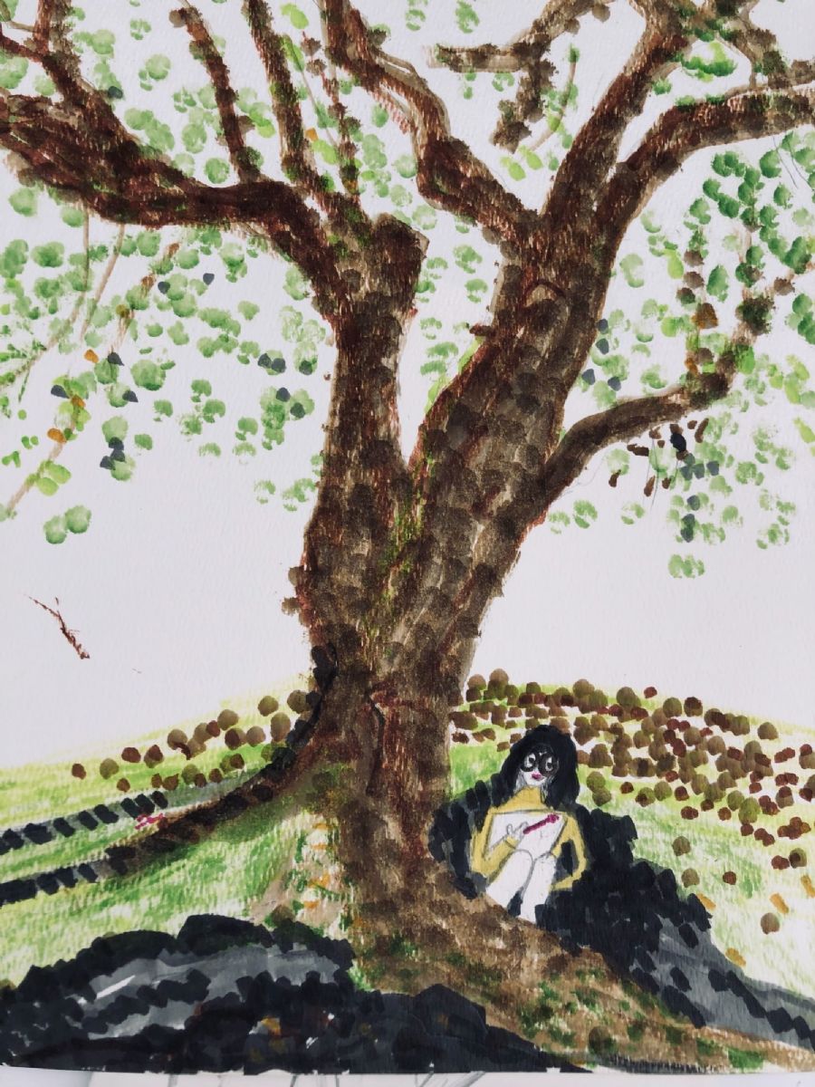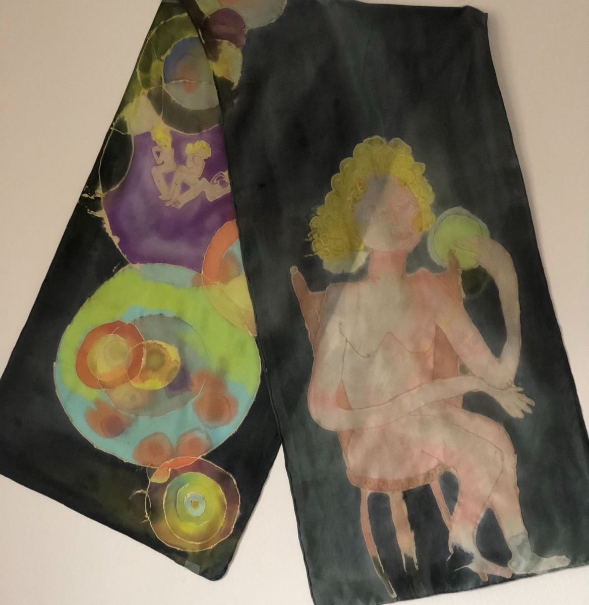 Watercolor on silk, $1