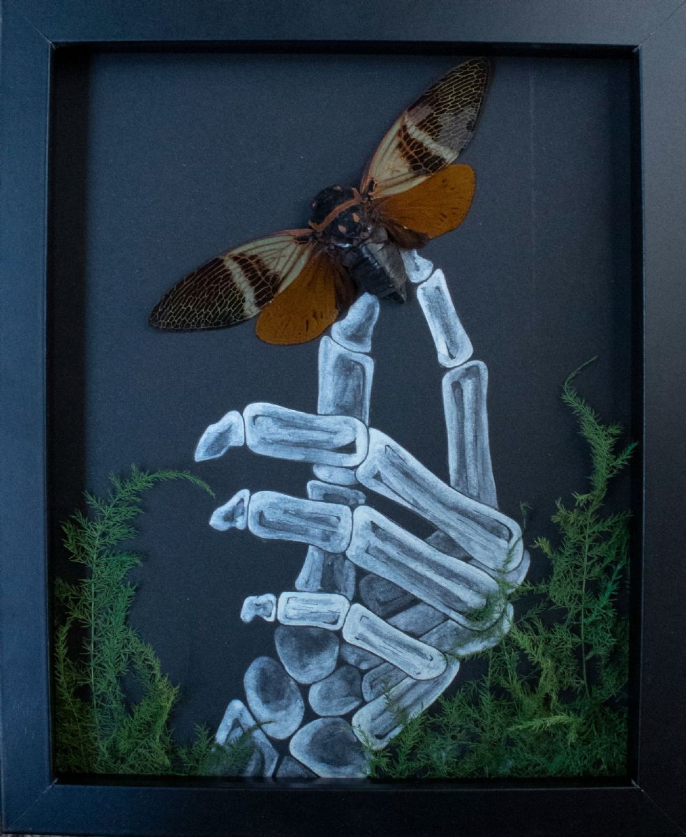 Limited Edition | acrylic, gouache, micron pen, cicada, ferns, 8" x 10" x 0"
