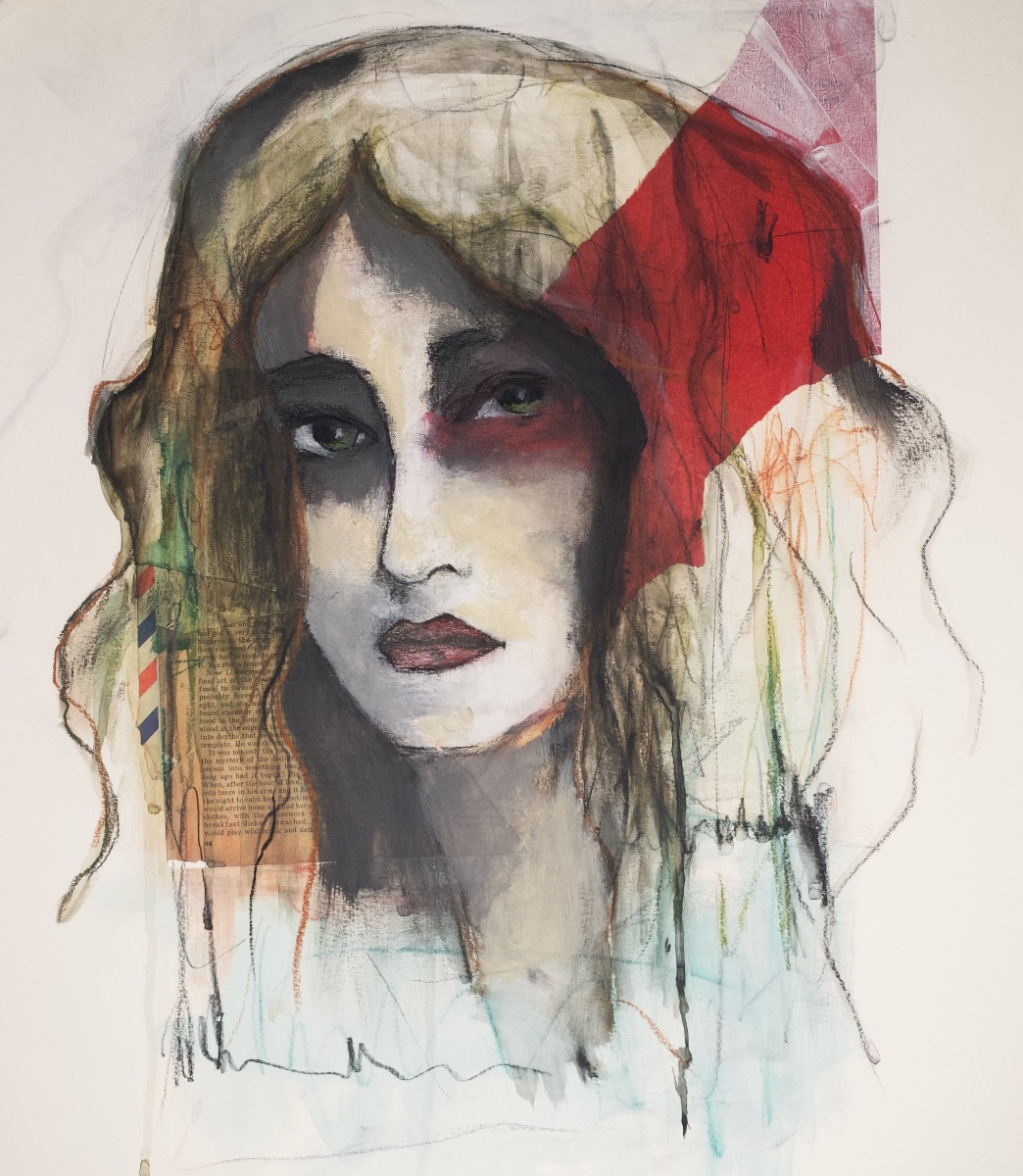Mixed Media on watercolor paper mounted on wood. 20" x 15.5"