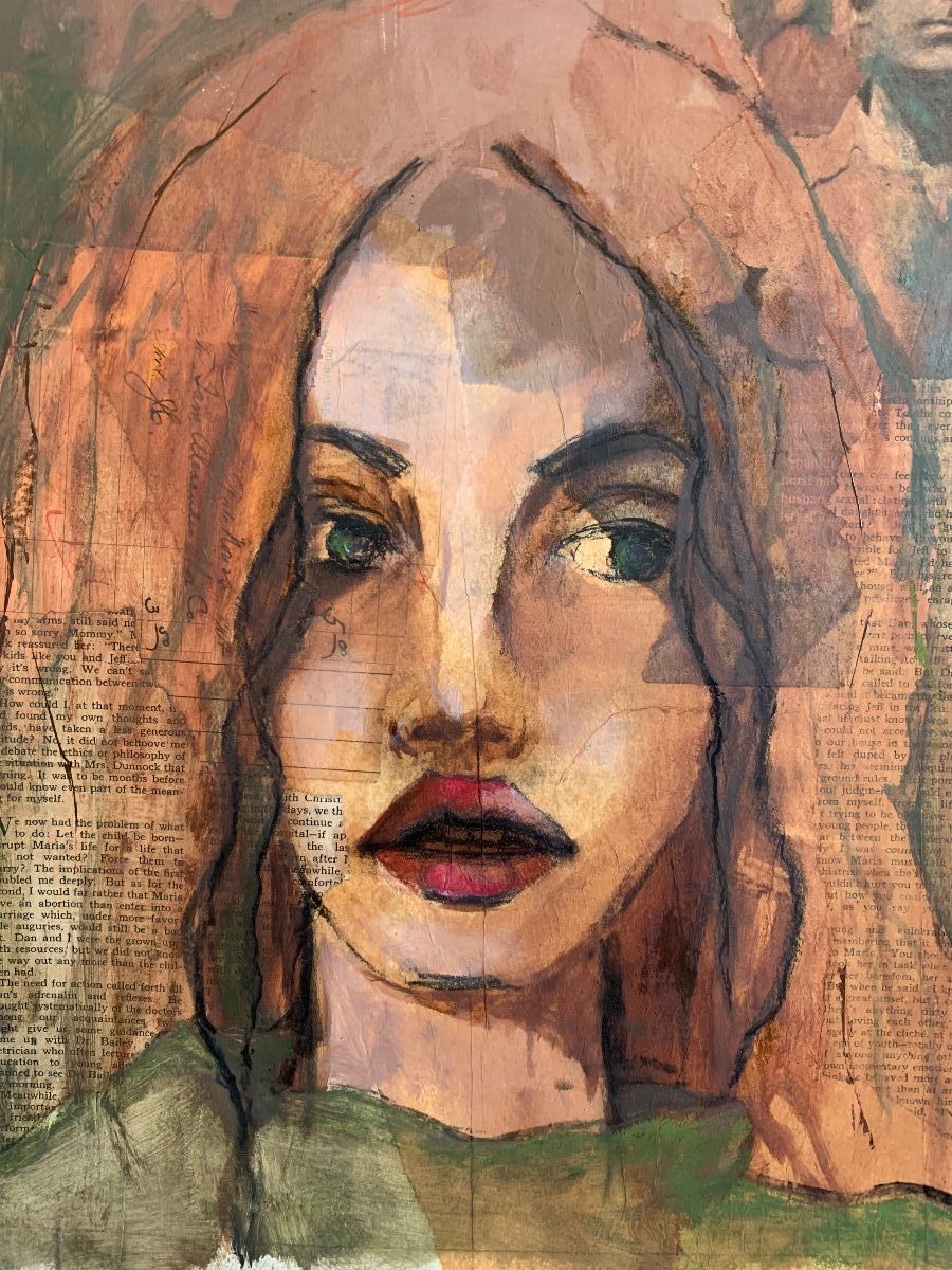 Mixed Media and Oil Paint on watercolor paper mounted on wood. 14" x 11"
