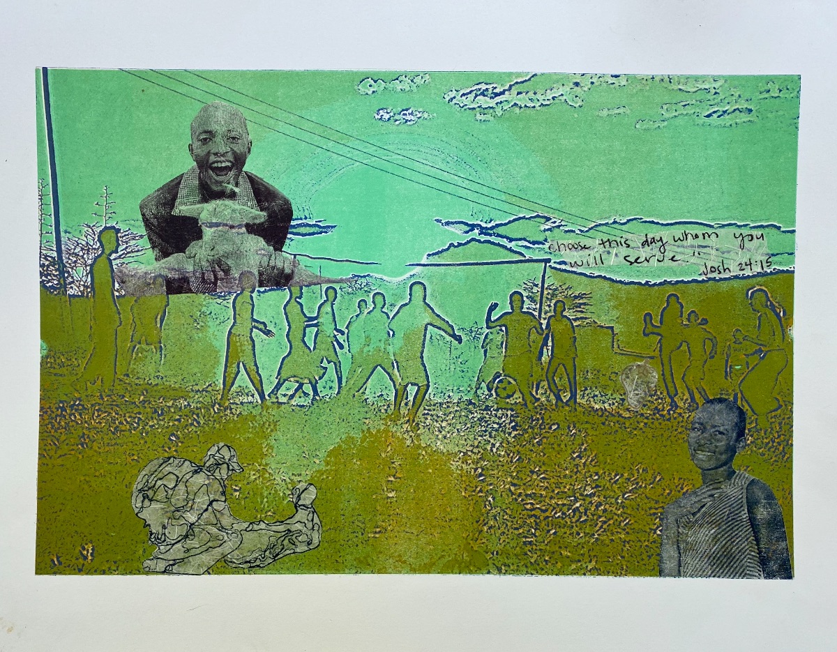 Polysester plate lithograph with chine-collé collage. 11 x 20 inches.
