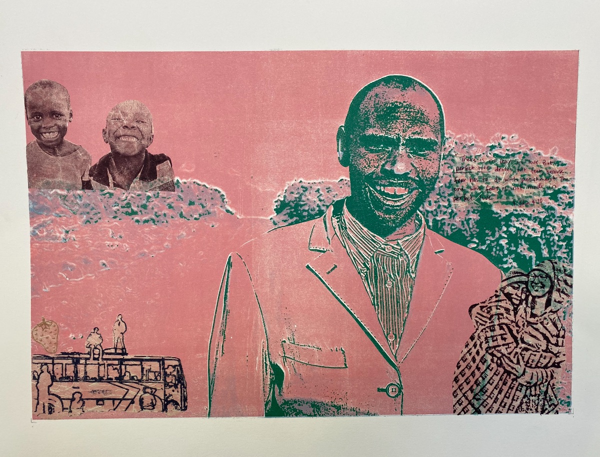 Polysester plate lithograph with chine-collé collage. 11 x 20 inches.