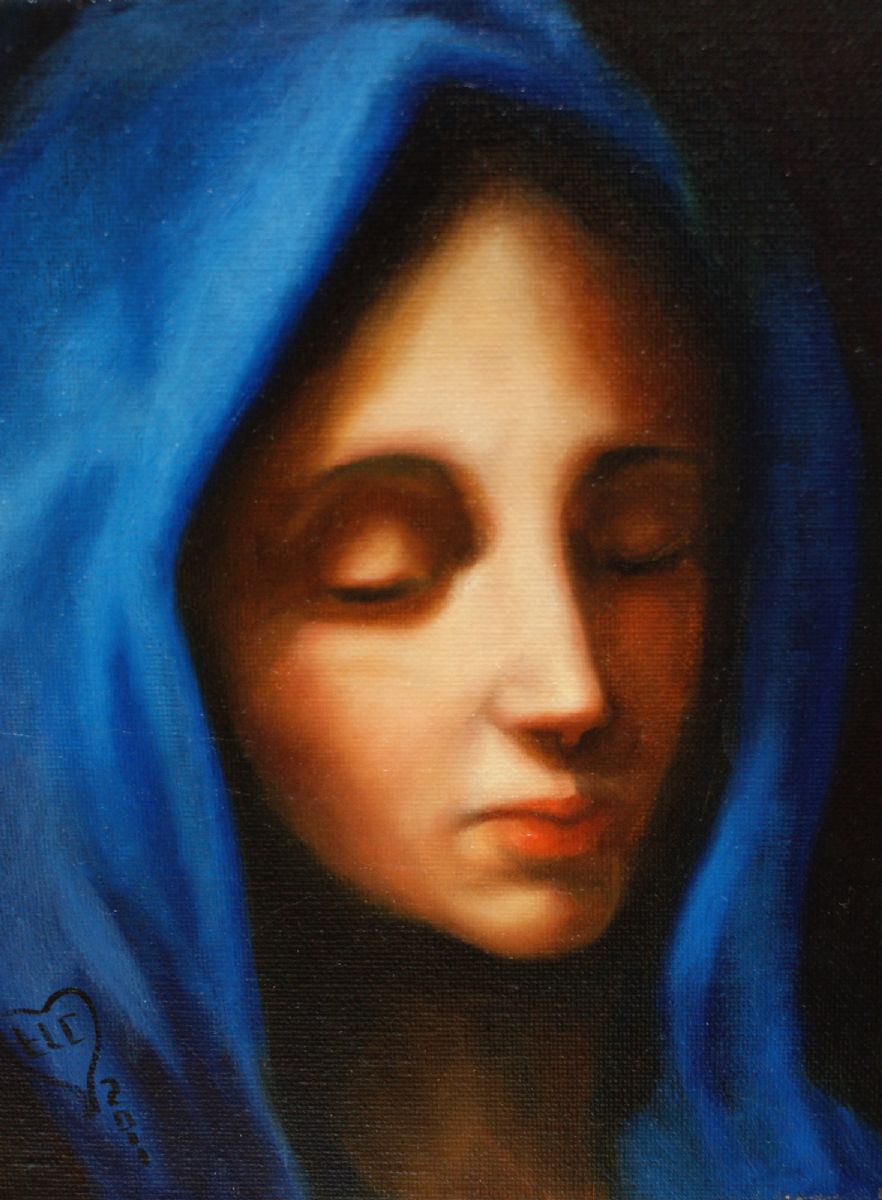 8x10 Oil on Canvas, Young Blessed Mother. Painted in the style of the Old Masters.