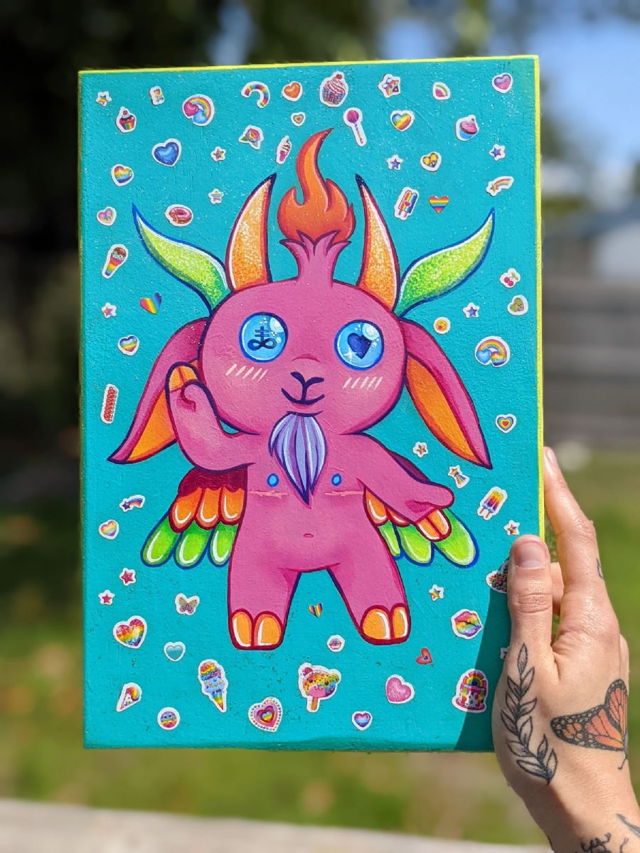 This is my interpretation of Baphomet, one that celebrates trans joy.
