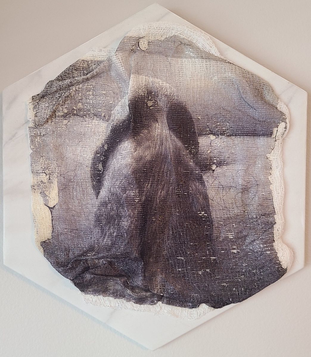 Mixed media edition | Photography on gauze on ceramic tile, 8" x 8" x 0"