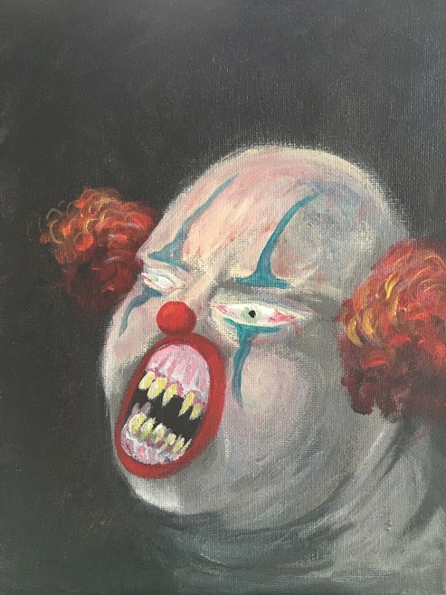 Years before the painting, while on the road to meet me at a cabin in Vermont, my brothers jokingly began calling McDonald's "Dick Daniels." The joke persisted, even evolved, eventually gaining a clown themed mascot: Donald Dick Daniels. Though Donald Dick Daniels existed conceptually for years, it wasn't until the first summer of covid that he gained the visage you see here today. He would like you to eat all the hamburgers.