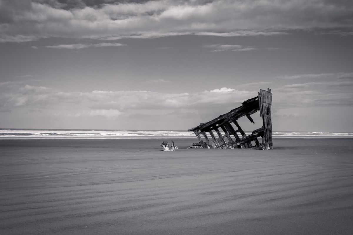 Peter Iredale was a four-masted steel barque sailing vessel that ran ashore October 25, 1906, on the Oregon coast en route to the Columbia River. She was abandoned on Clatsop Spit near Fort Stevens in Warrenton about four miles (6 km) south of the Columbia River channel.