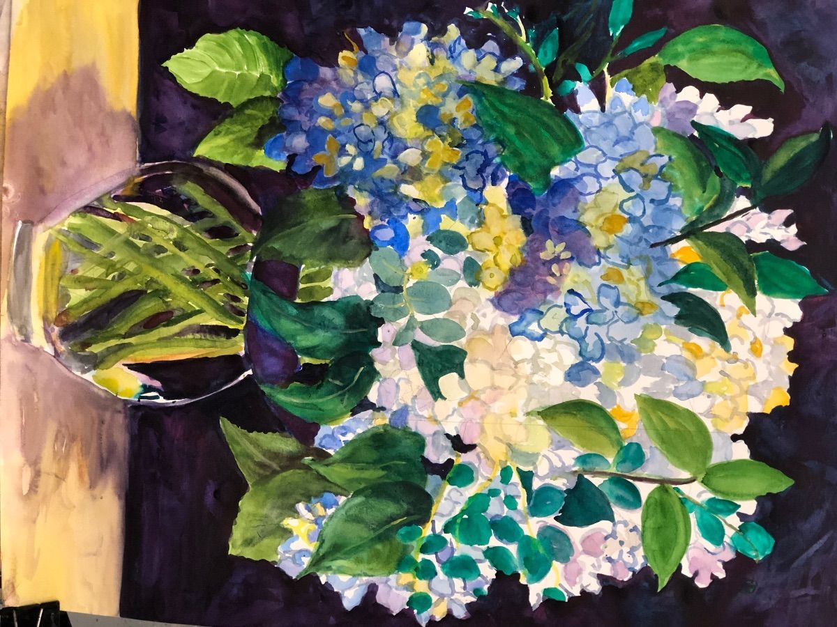 W.C.BEAUTIFUL BLUE AND WHITE SNOWBALLS. SIZE 34"HX28"W