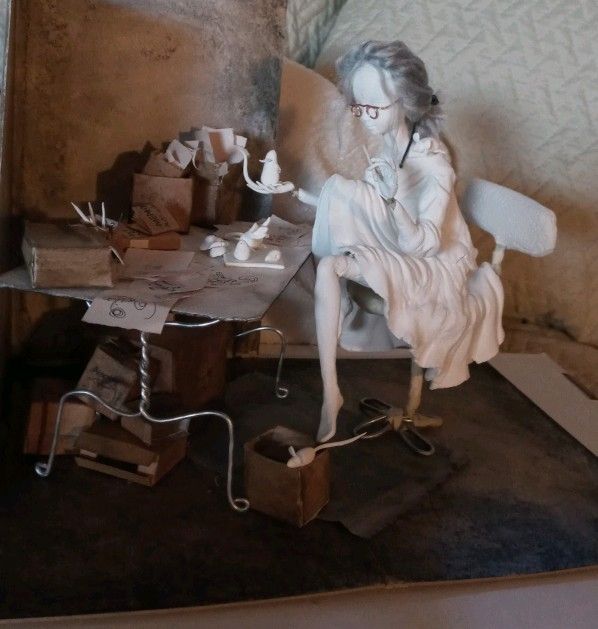 This self portrait recreates this time and is primarily made of clay, wire and paper.