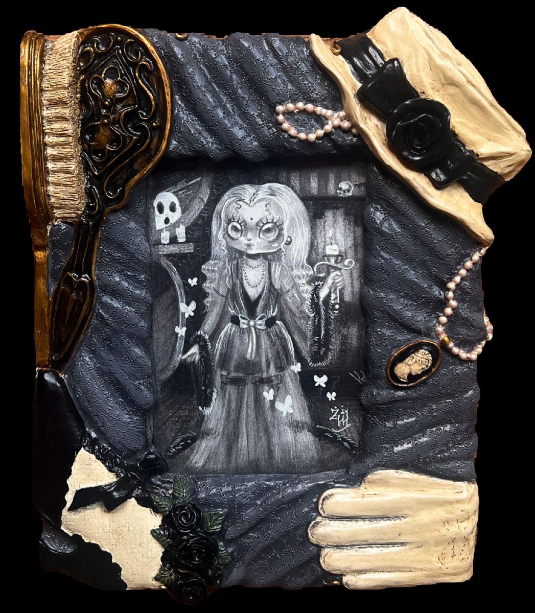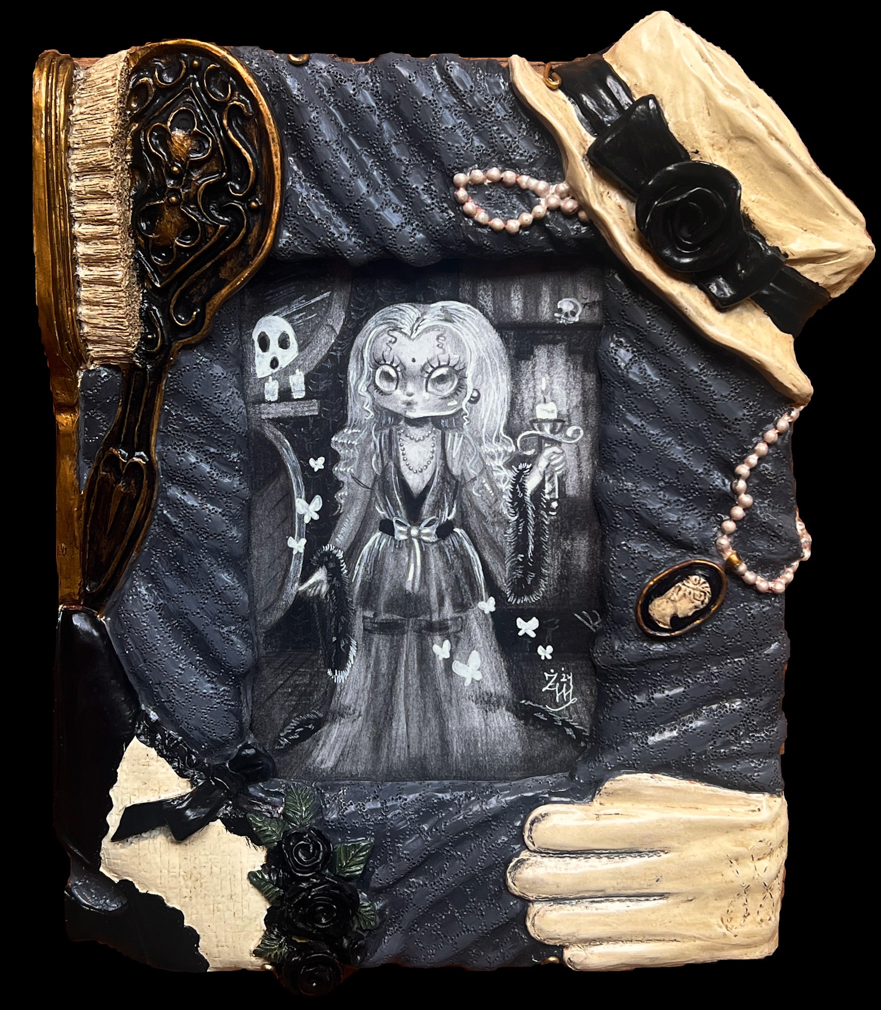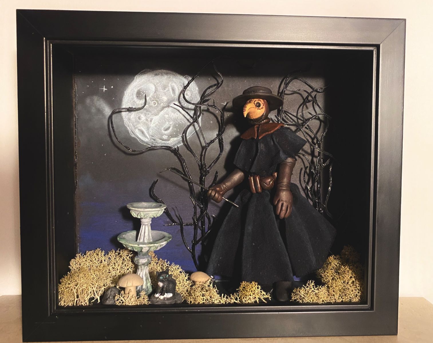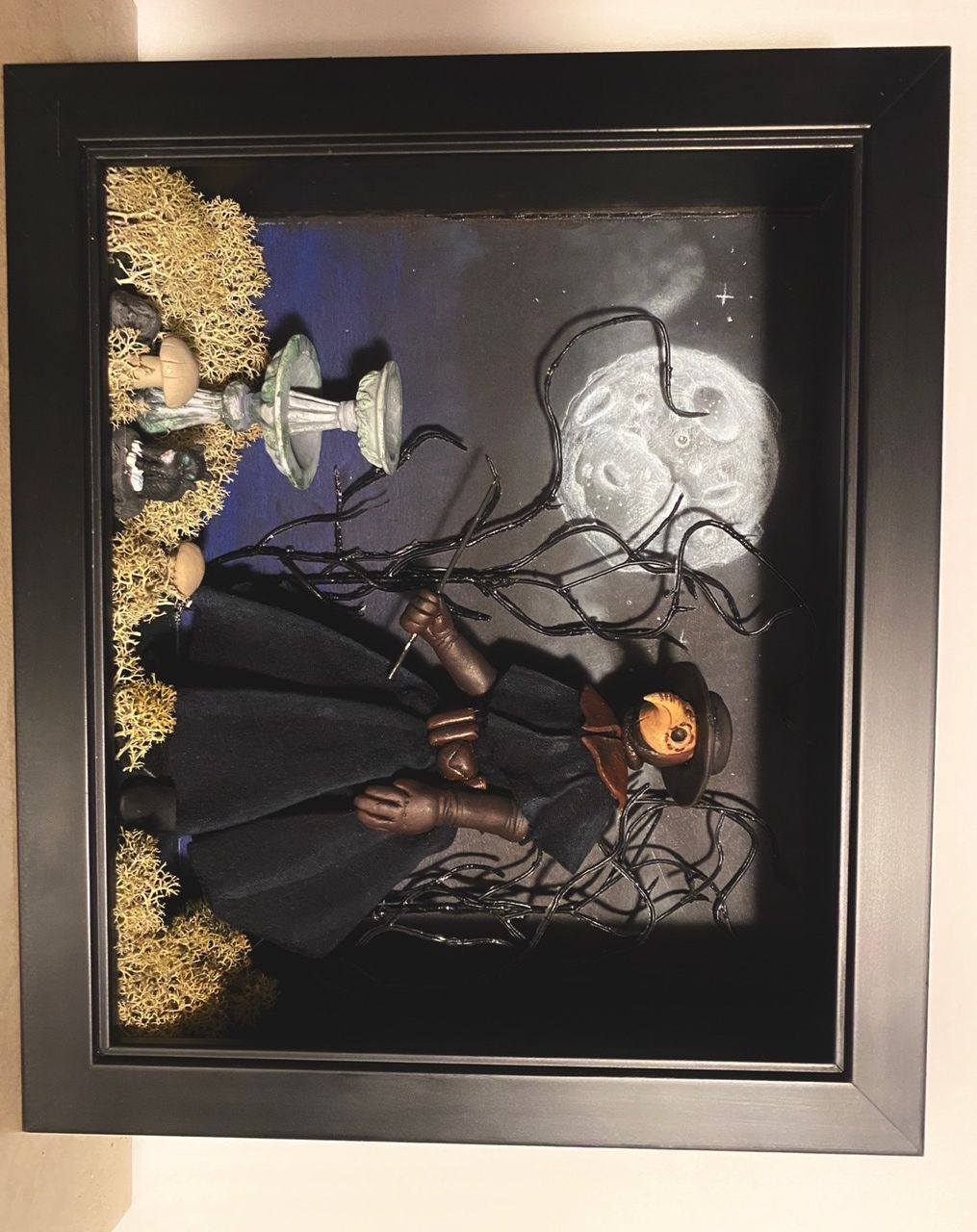 Paper, polymer clay, lichen, findings, shadow box , $250
