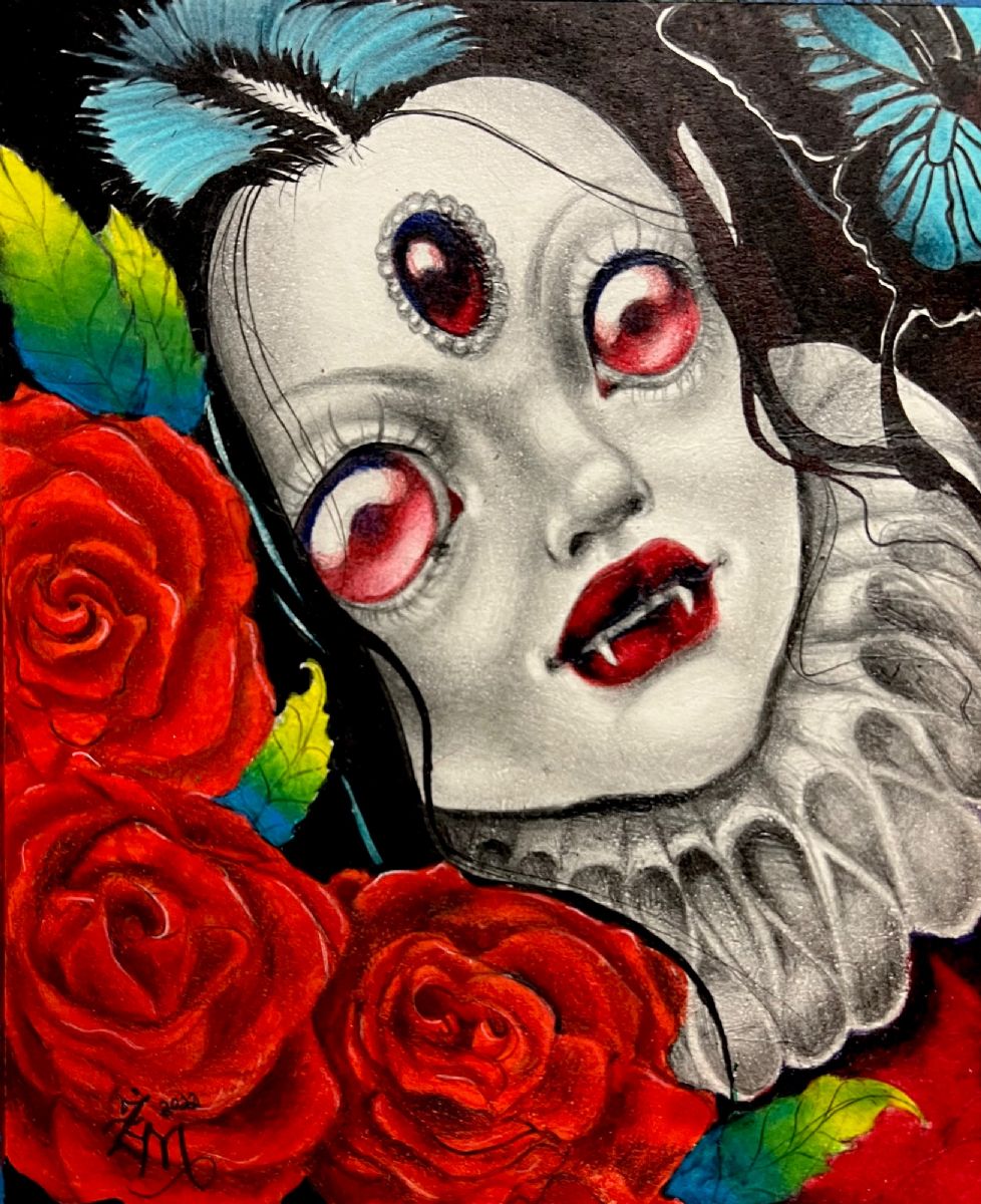 Colored pencil, charcoal pencil, marker, on paper , $50