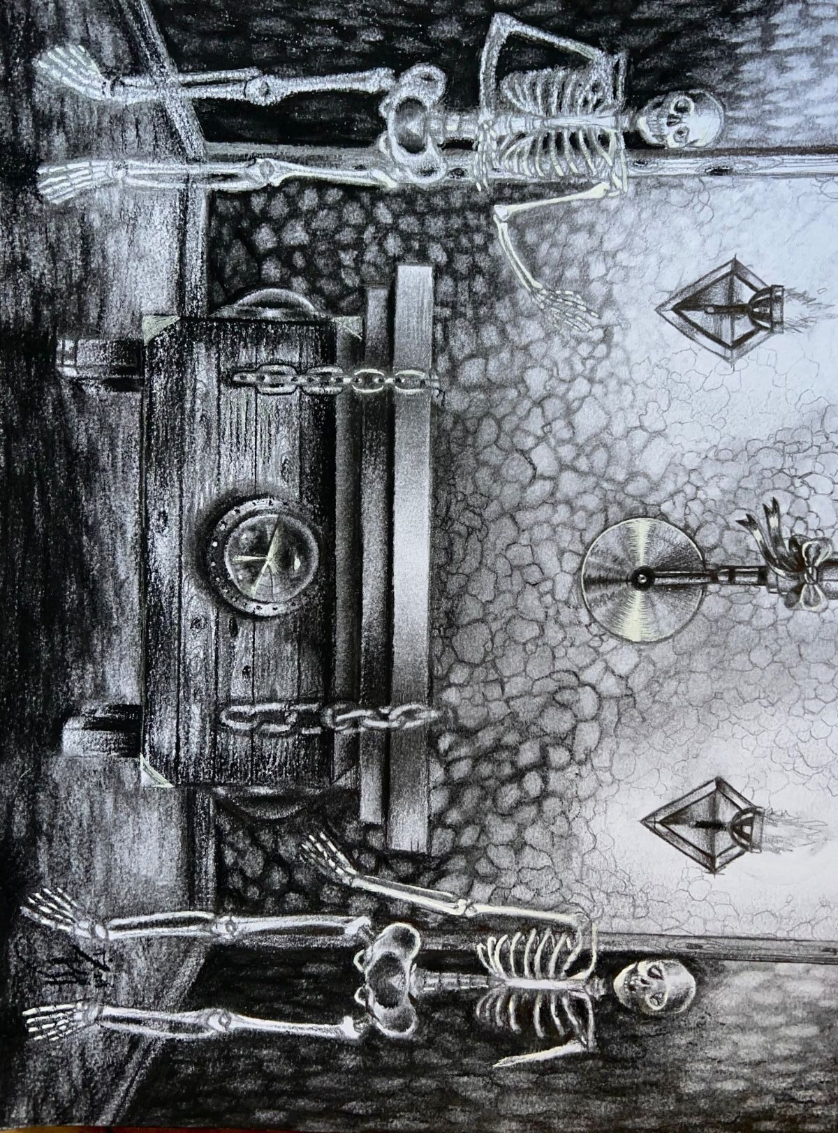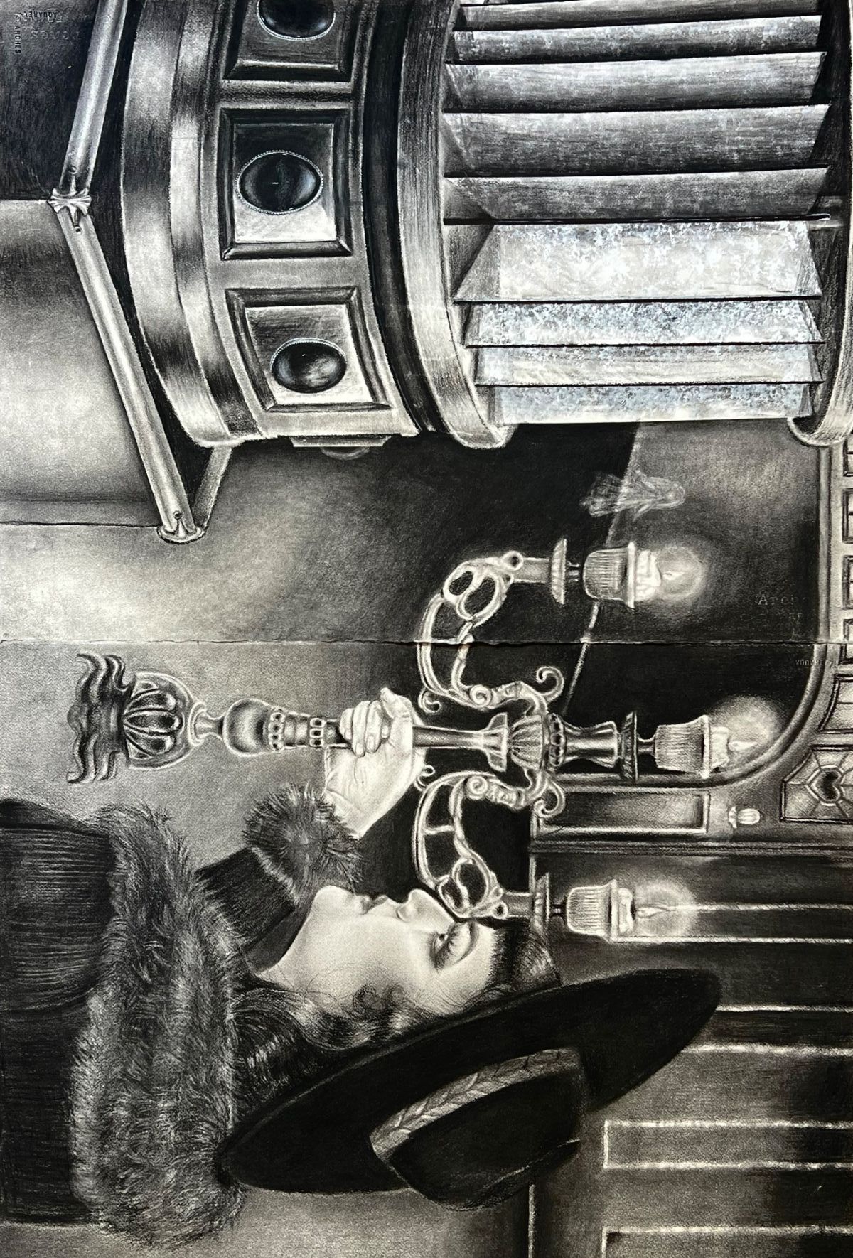 Paper, charcoal, gelly pen, graphite pencil, $650
