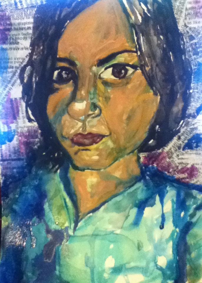 Mixed Media watercolor, collage, $100