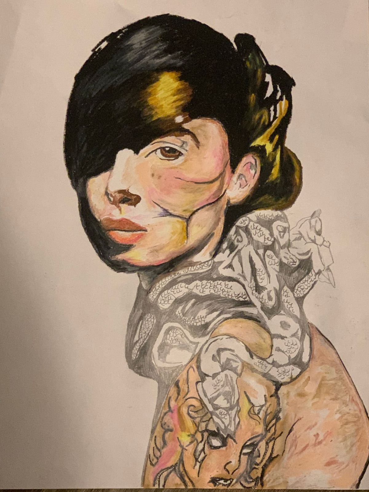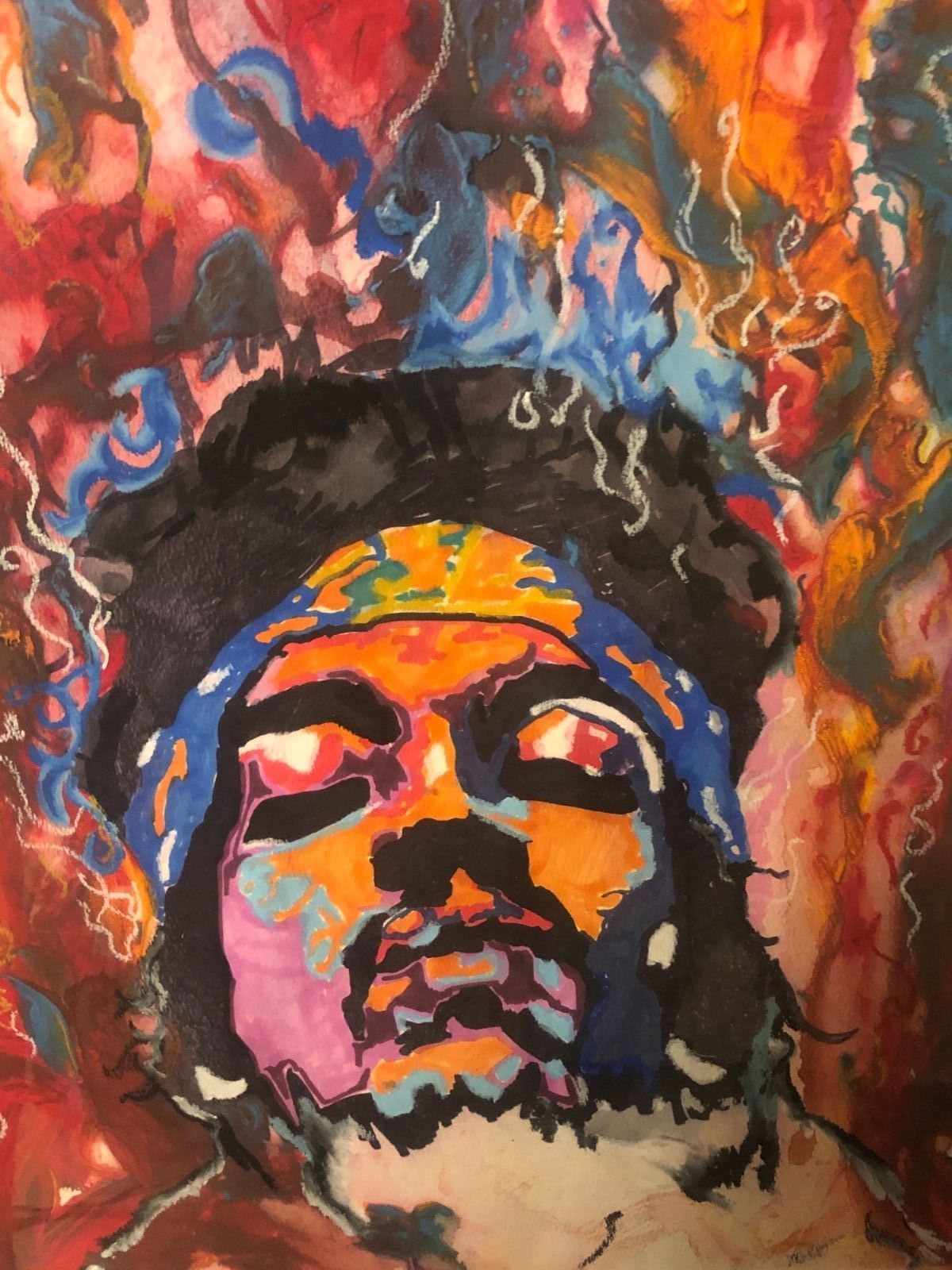 oil pastels, paint, pencil, $150