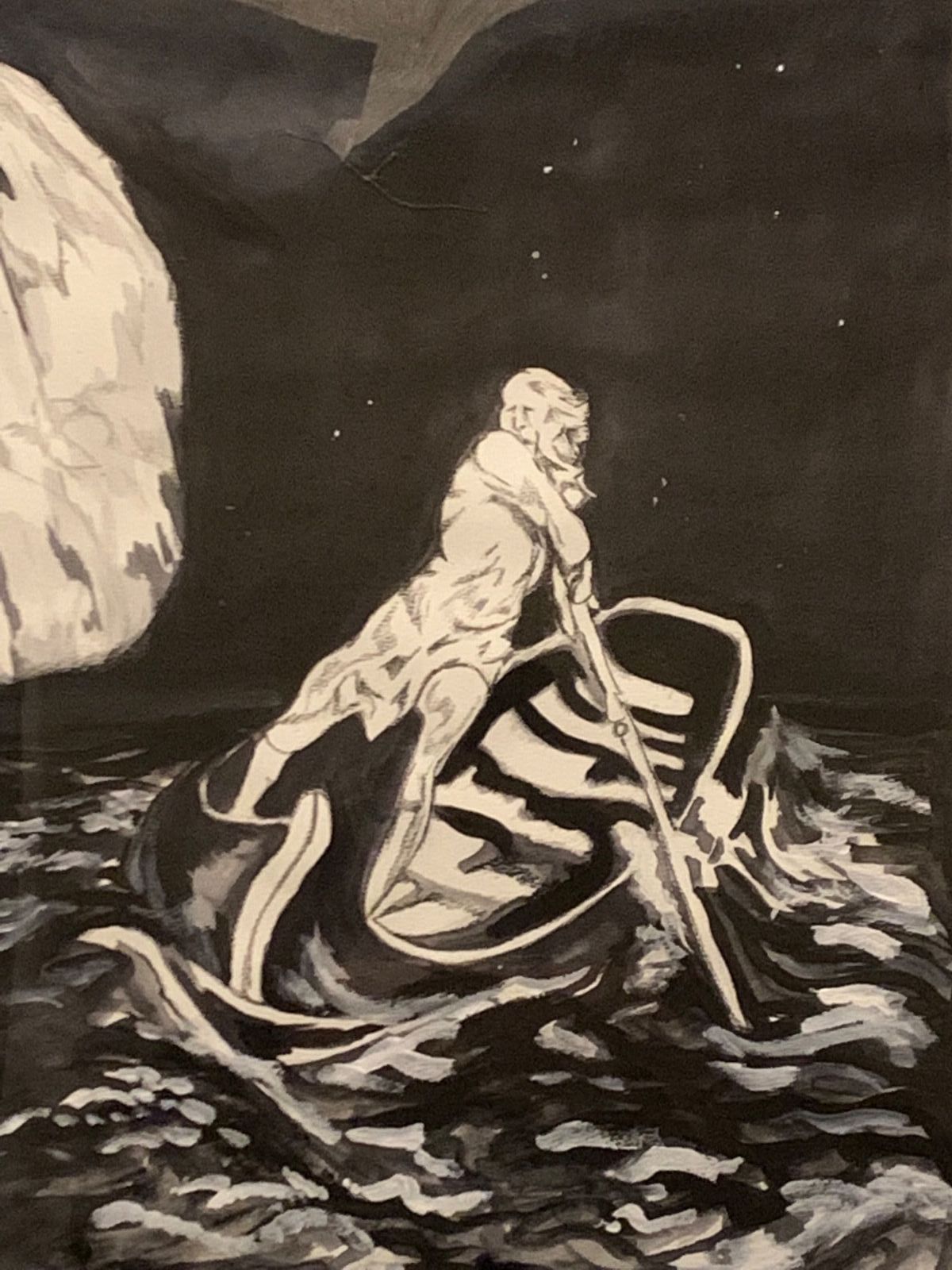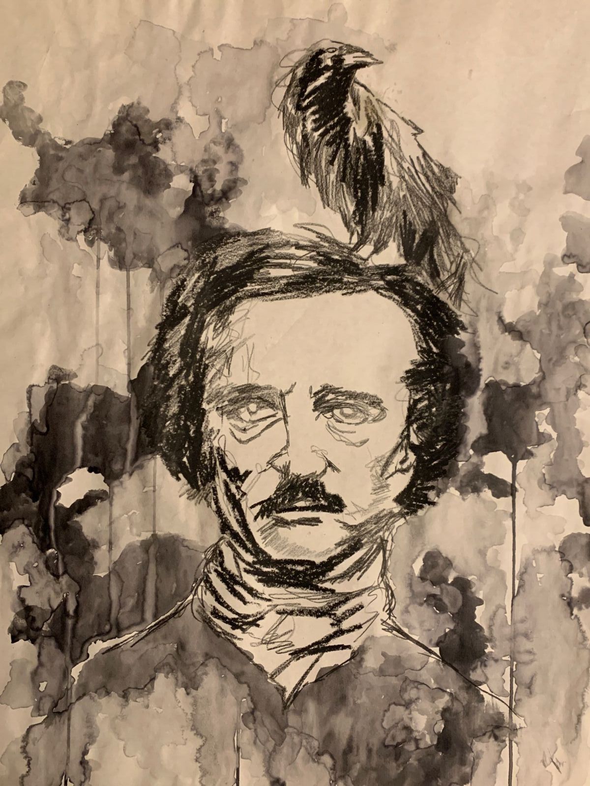 charcoal, ink, watercolor, pencil, $250