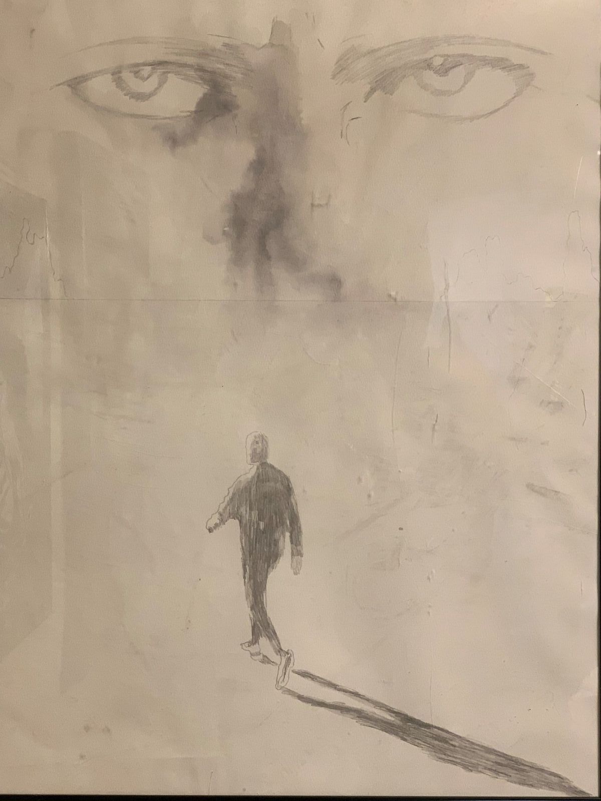 paper, oil pastel, watercolor, charcoal, pencil, $300