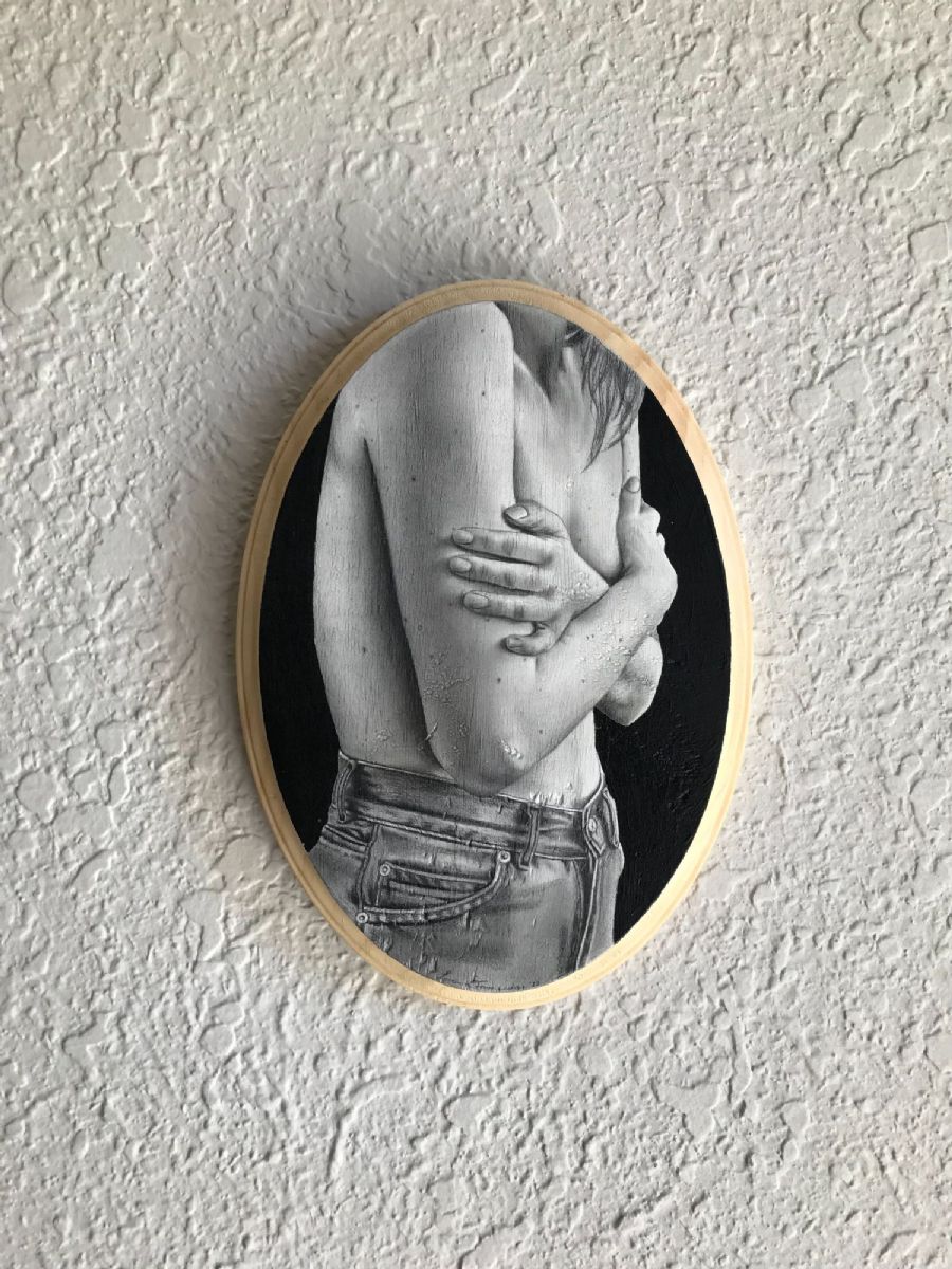 graphite and oil paint on paper, $300
