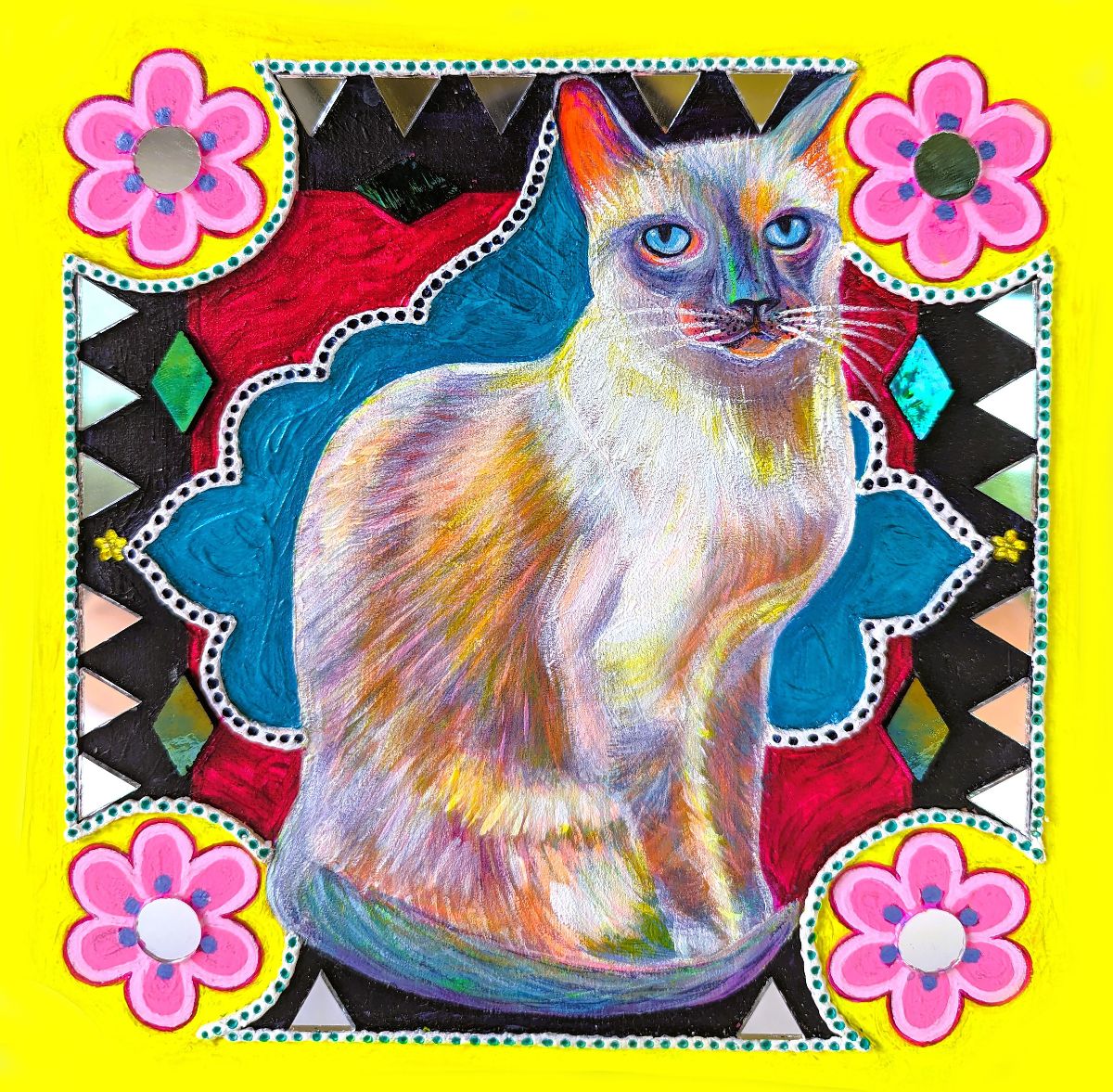 Mixed Media - acrylic, air dry clay, mosaic tiles, $500