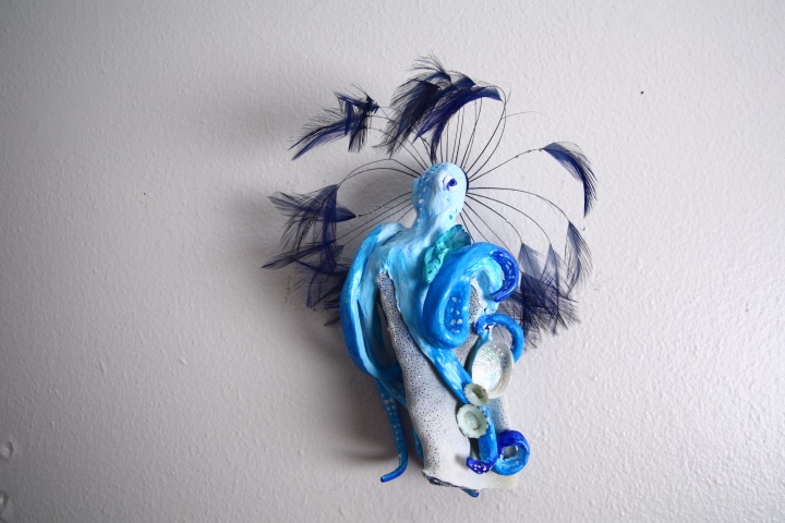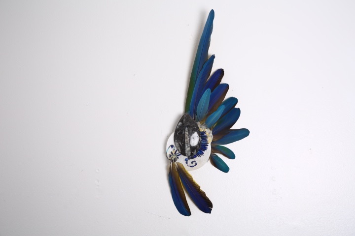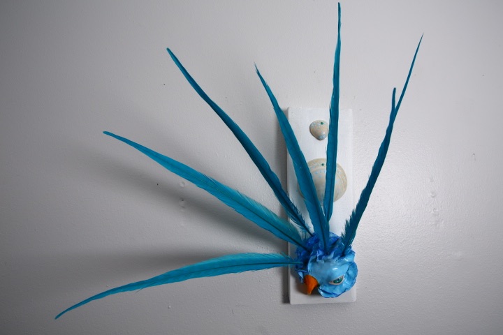 Wood, Shell, Clay and Pheasant Feathers, $300