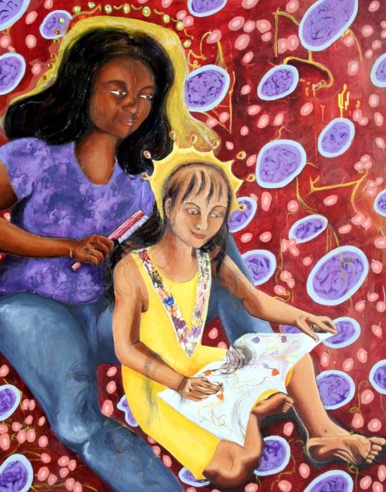 Acrylic and mixed media on canvas, $500
