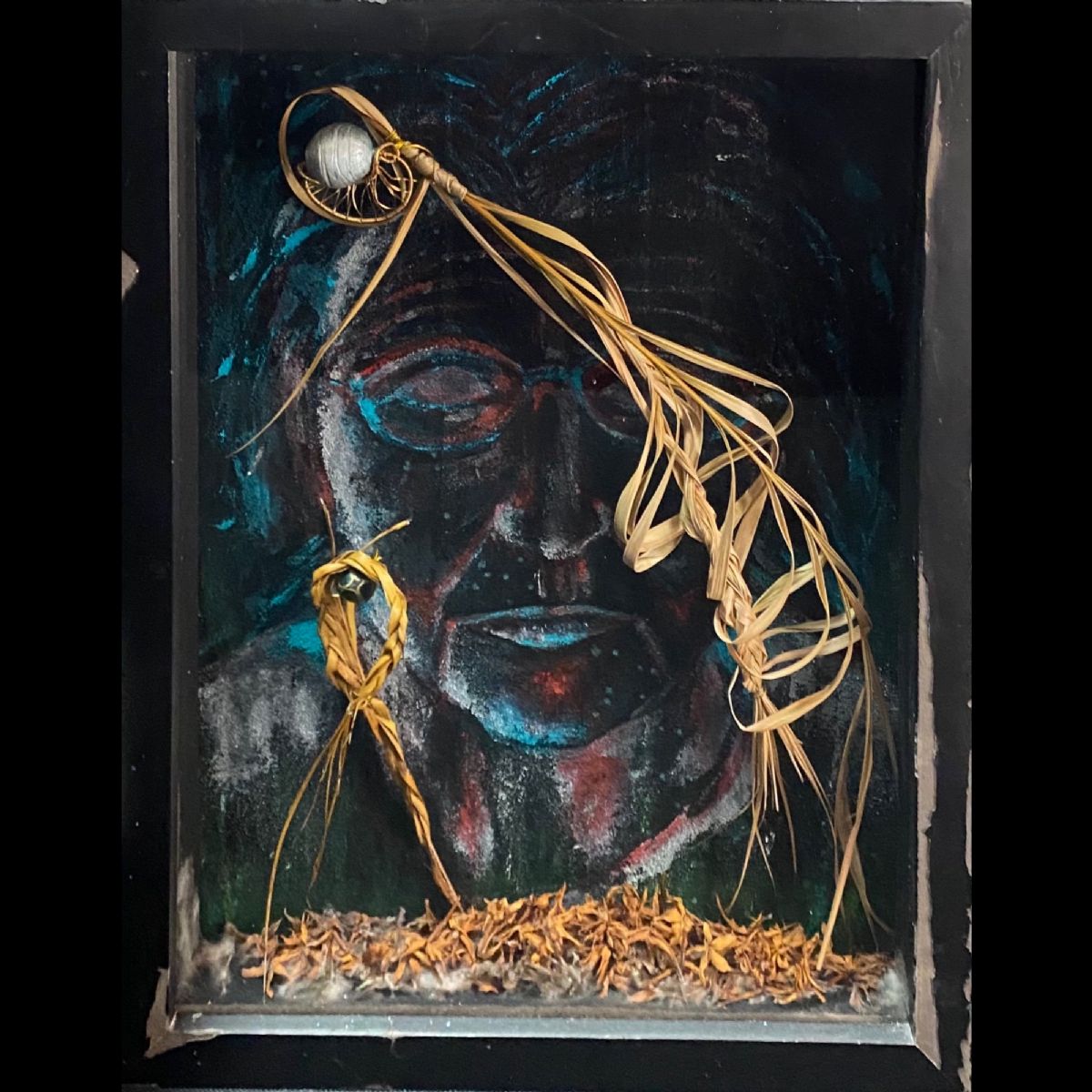 Acrylic, silver wire, bead, dry grass and flowers , $95