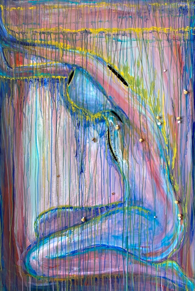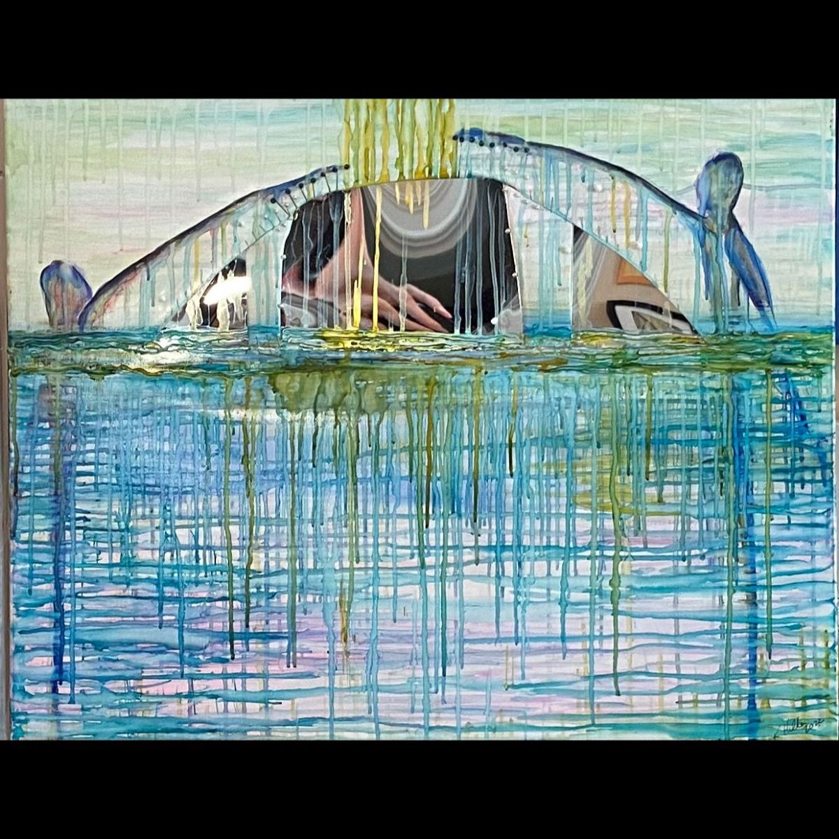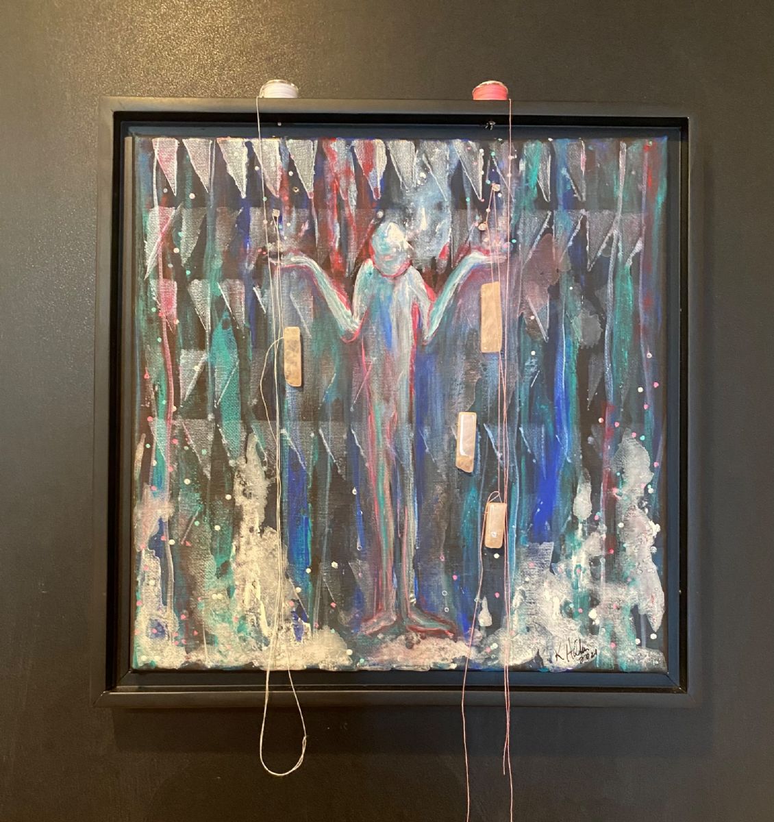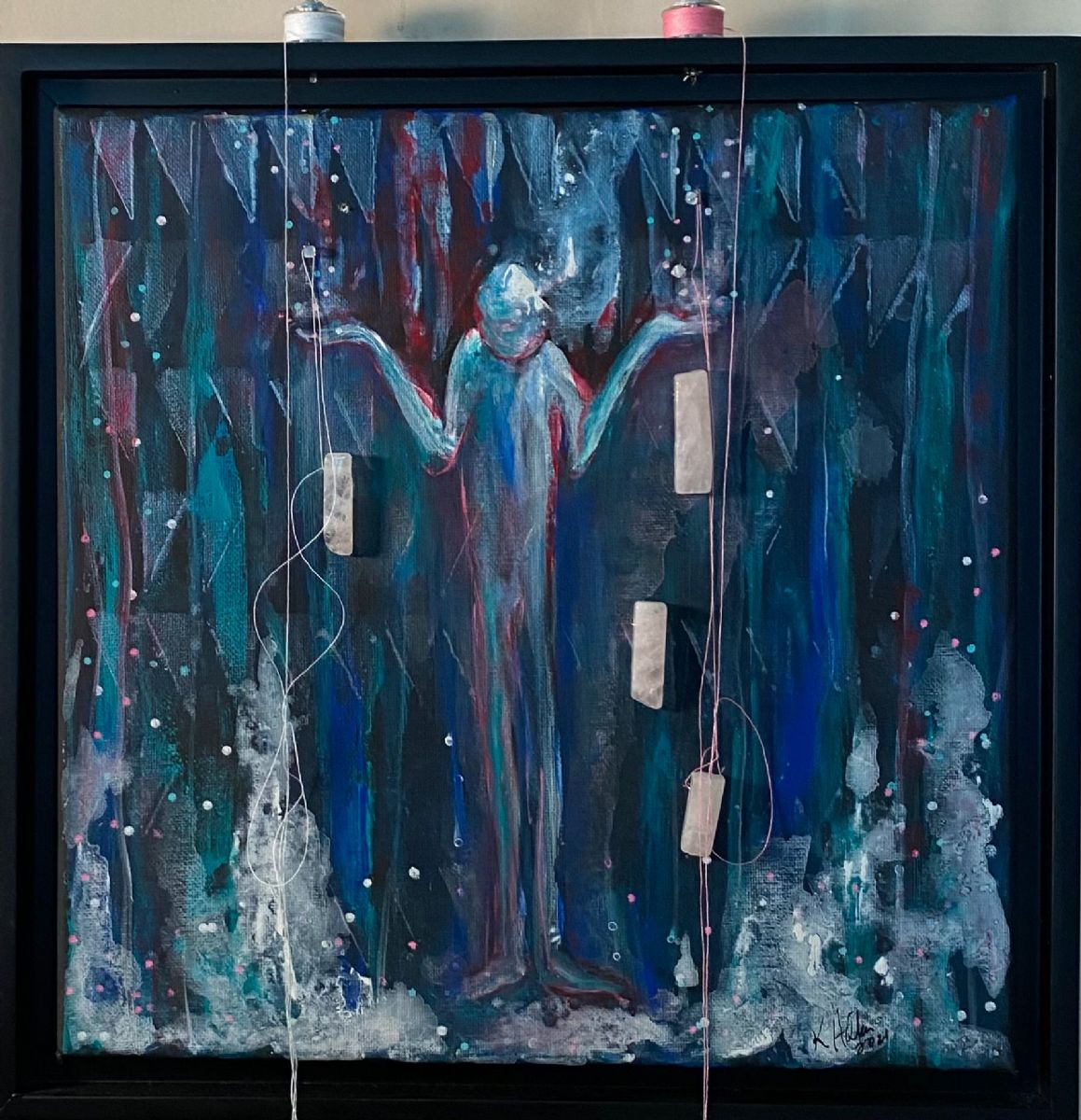 Alcohol Ink, Acrylic, silver wire, thread, beads, $3,600