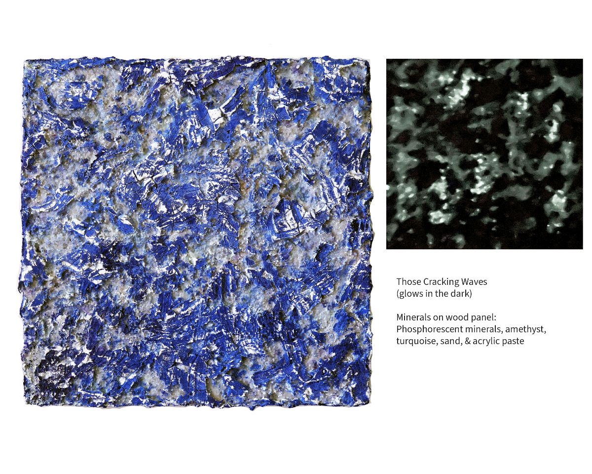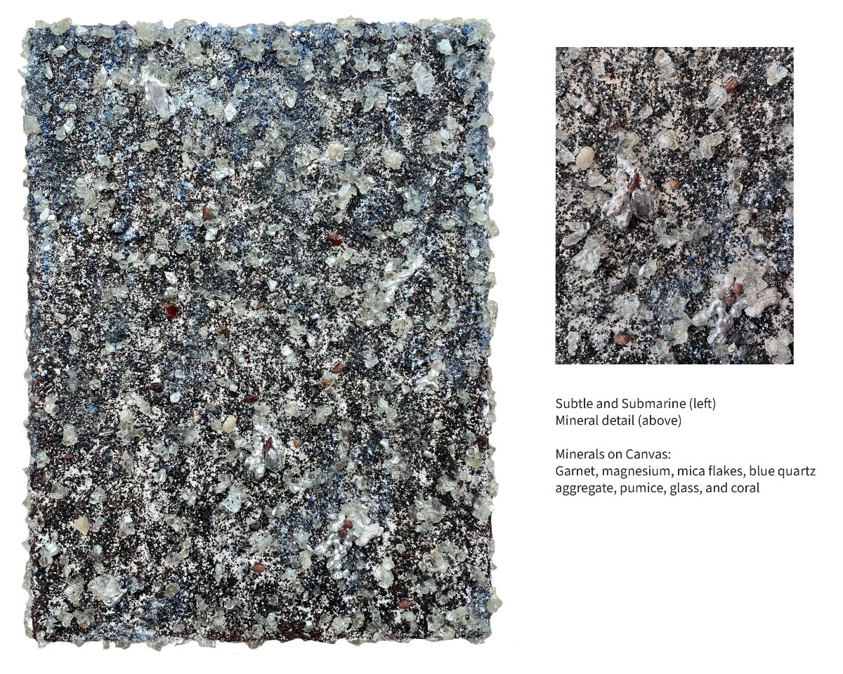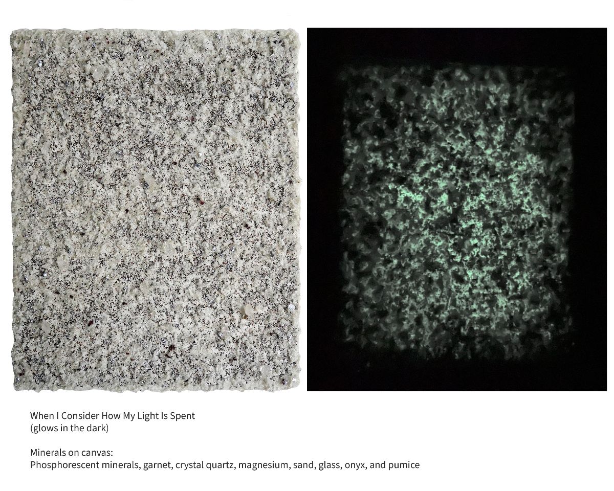 Phosphorescent minerals, garnet, crystal on canvas, $480