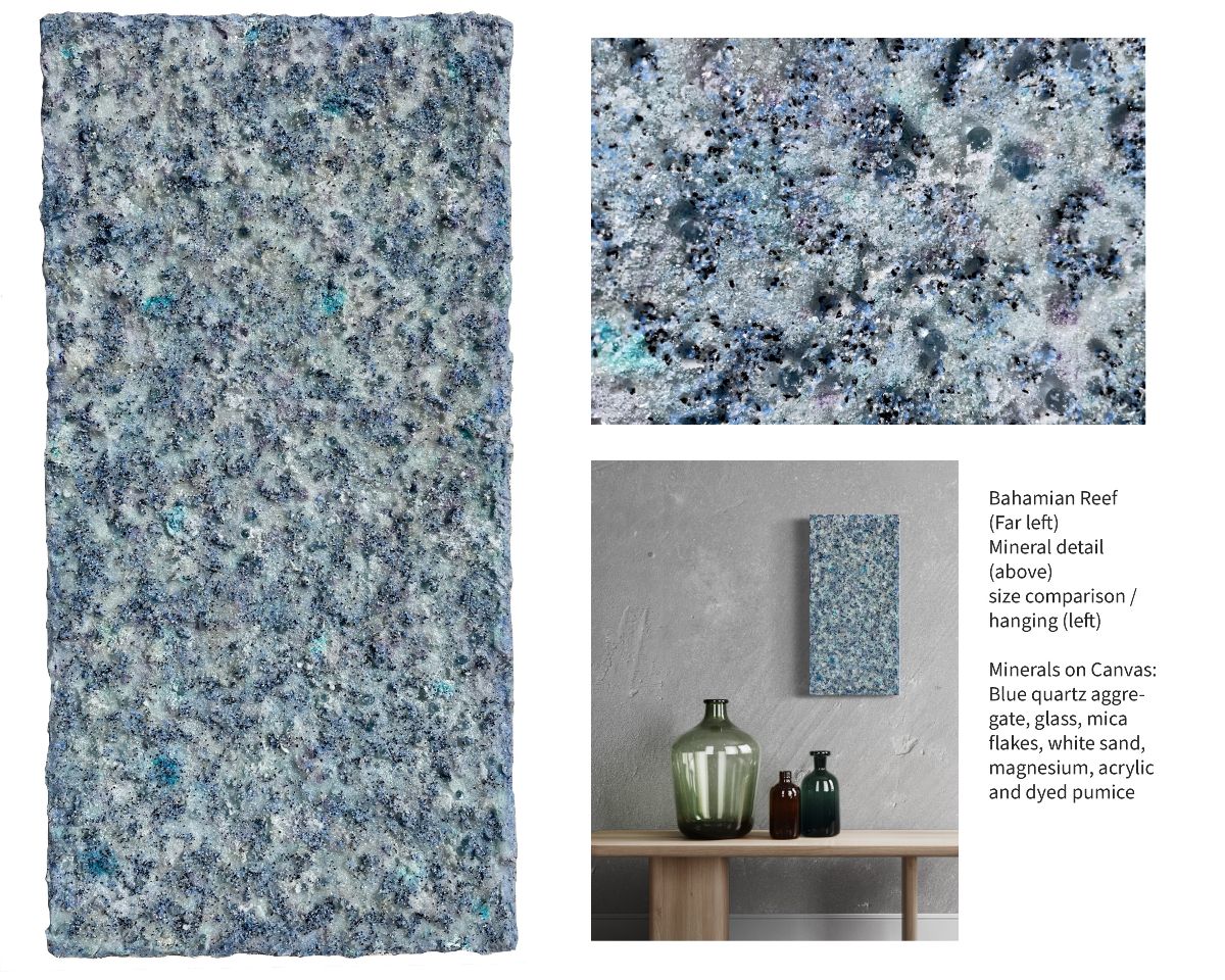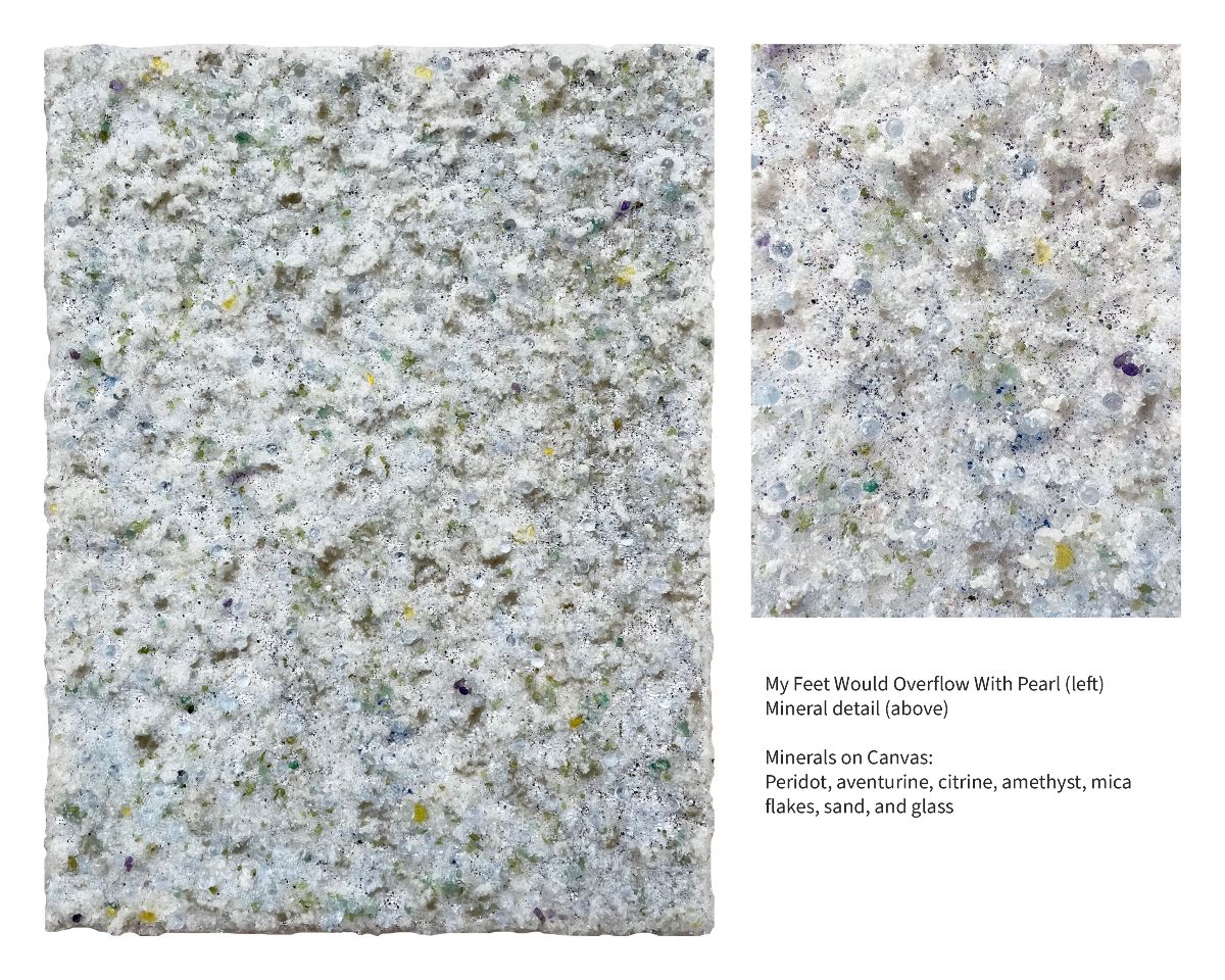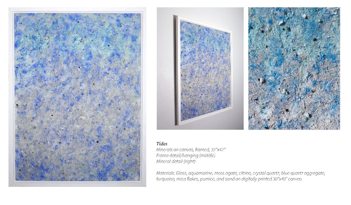 Phosphorescent minerals, garnet, crystal on canvas, $480