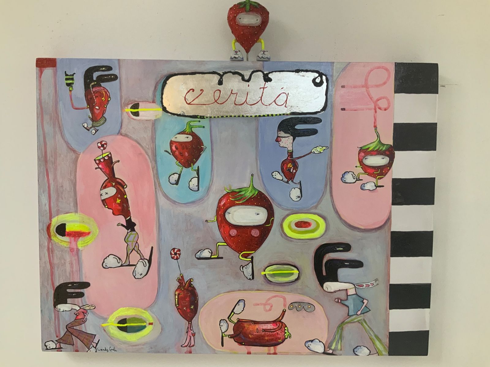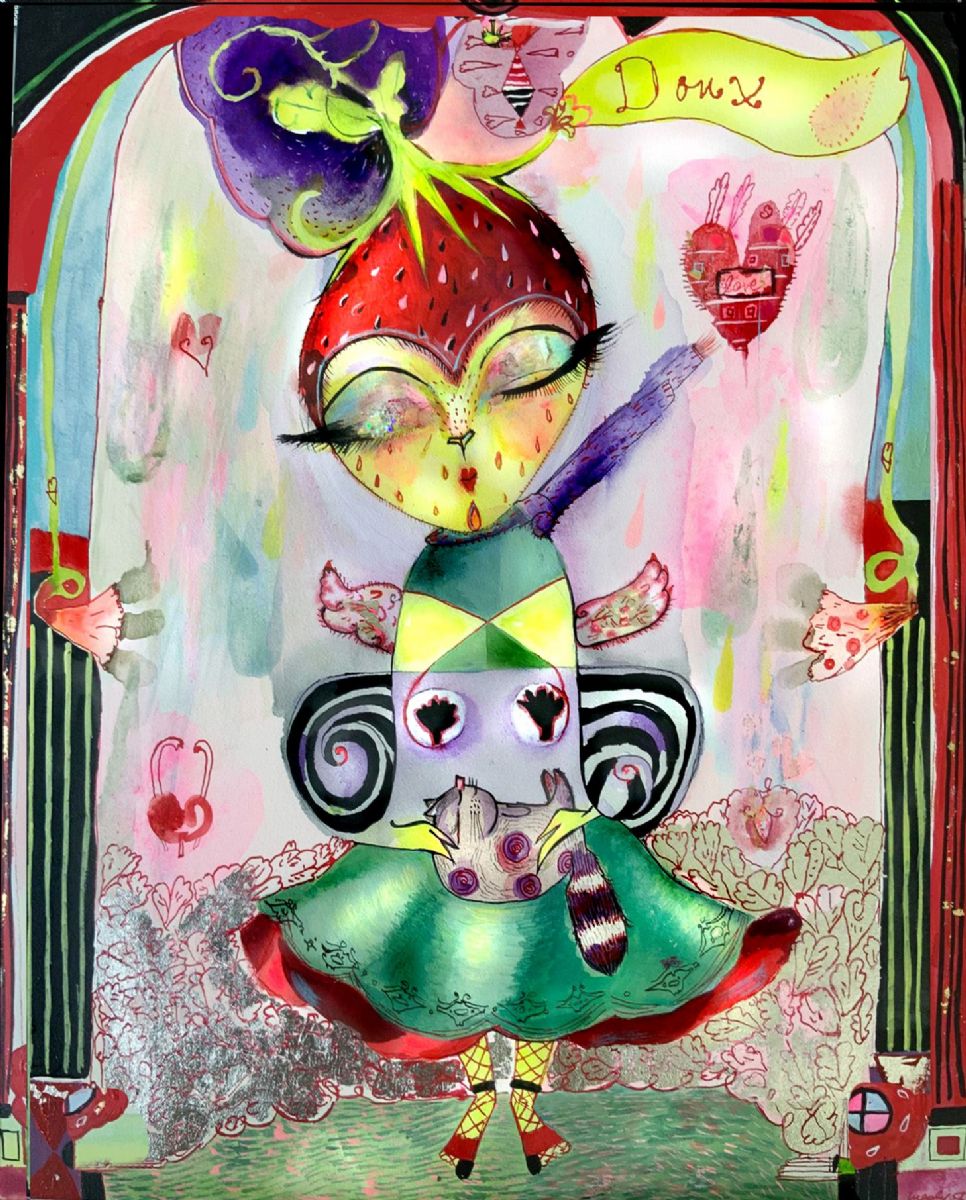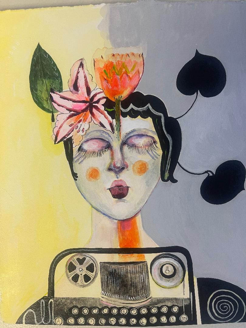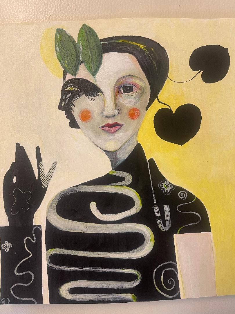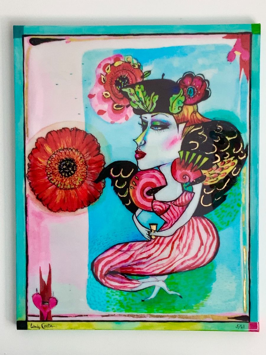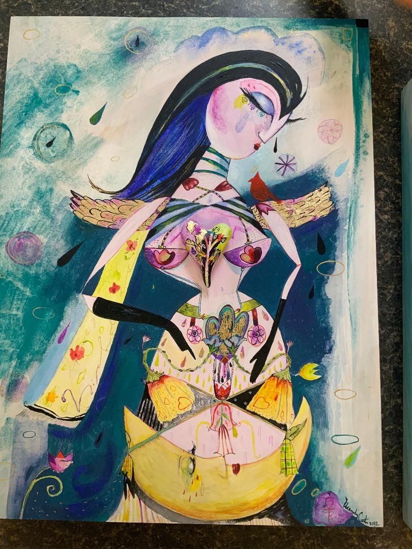 acrylic,print,gold leaf, on board, $1,400