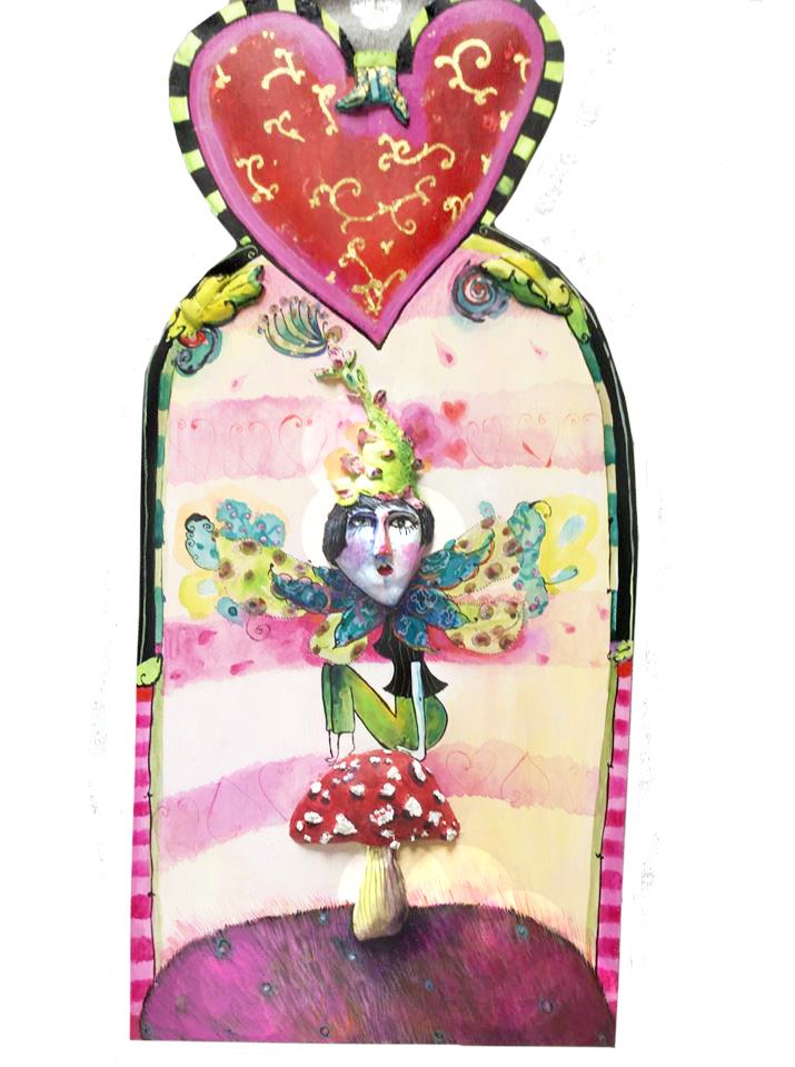 Acrylic, print, gold leaf, wood, $725