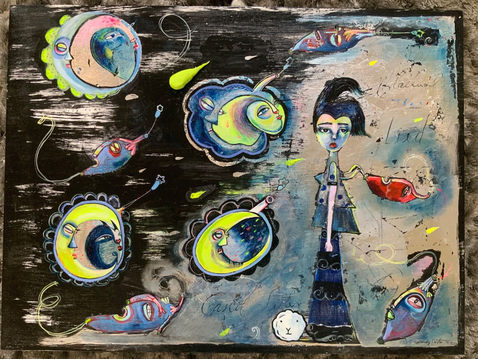 Print of painting, acrylic,, on wood, resin, $385