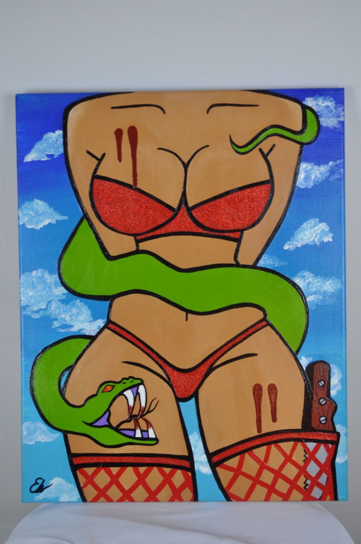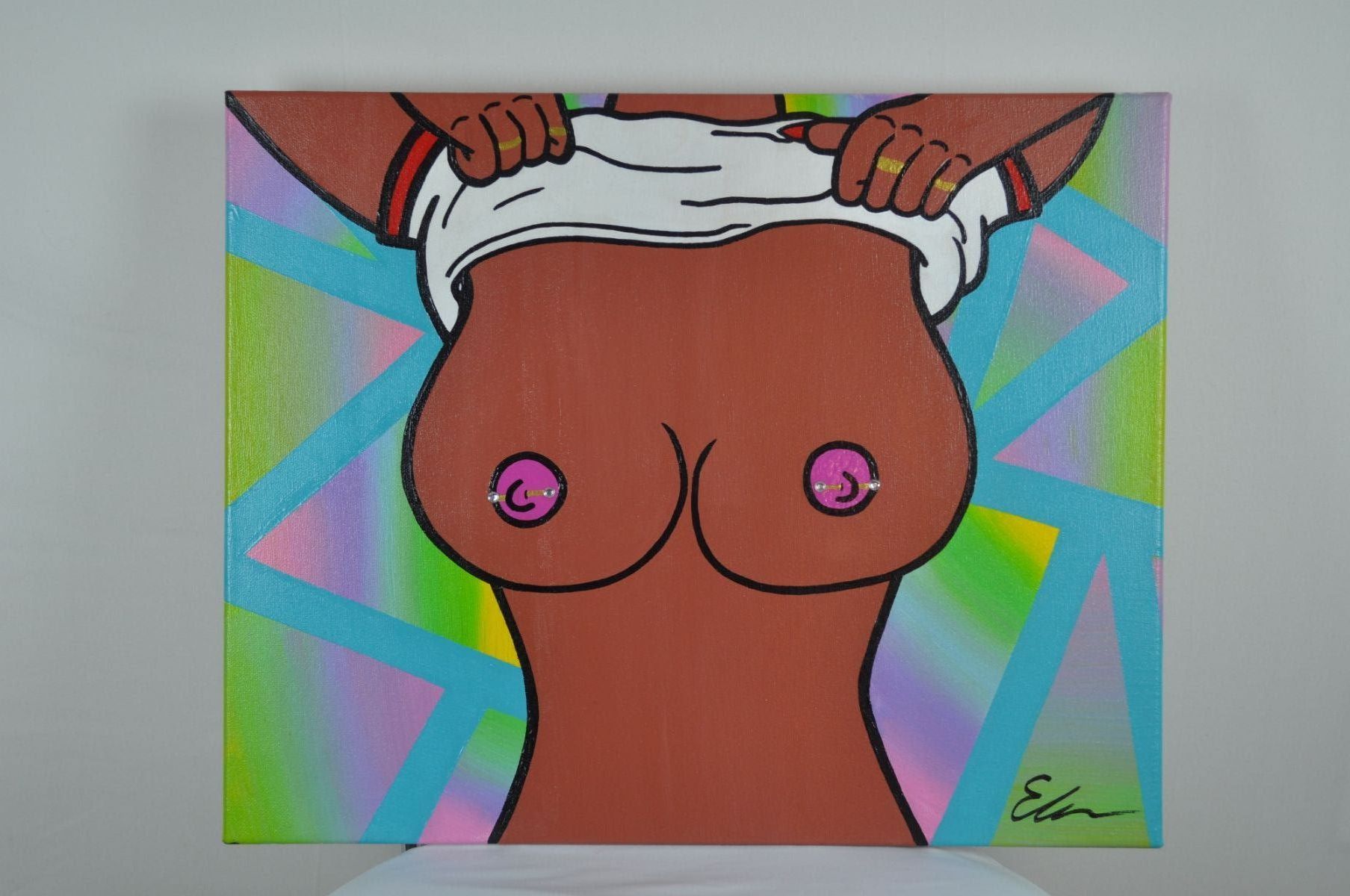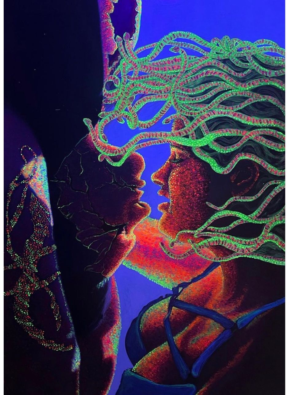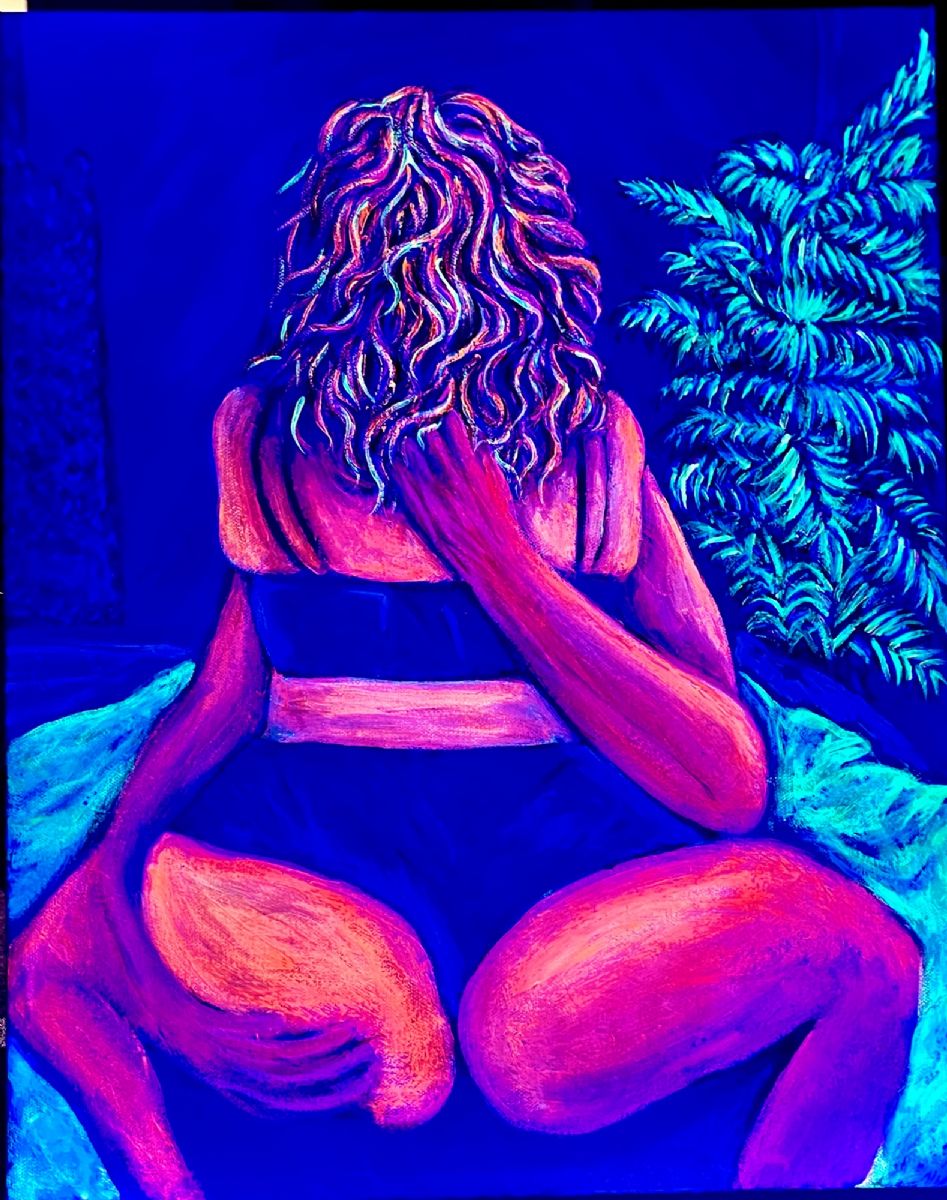 acrylic paint, micro glitter on stretched canvas, $1,450