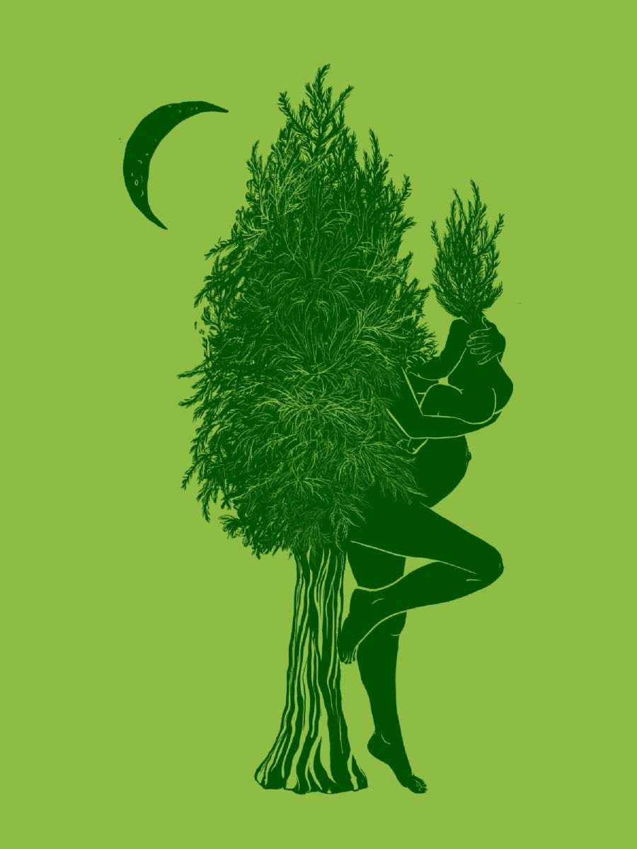 Redwood Mother Tree and Baby Sprout Botanical Lady