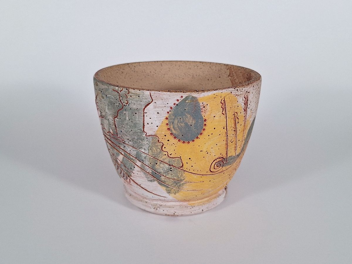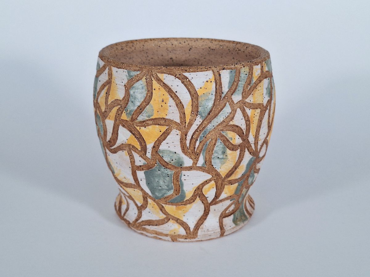 wild clay, stone, rice hull glaze, woodfired , $120