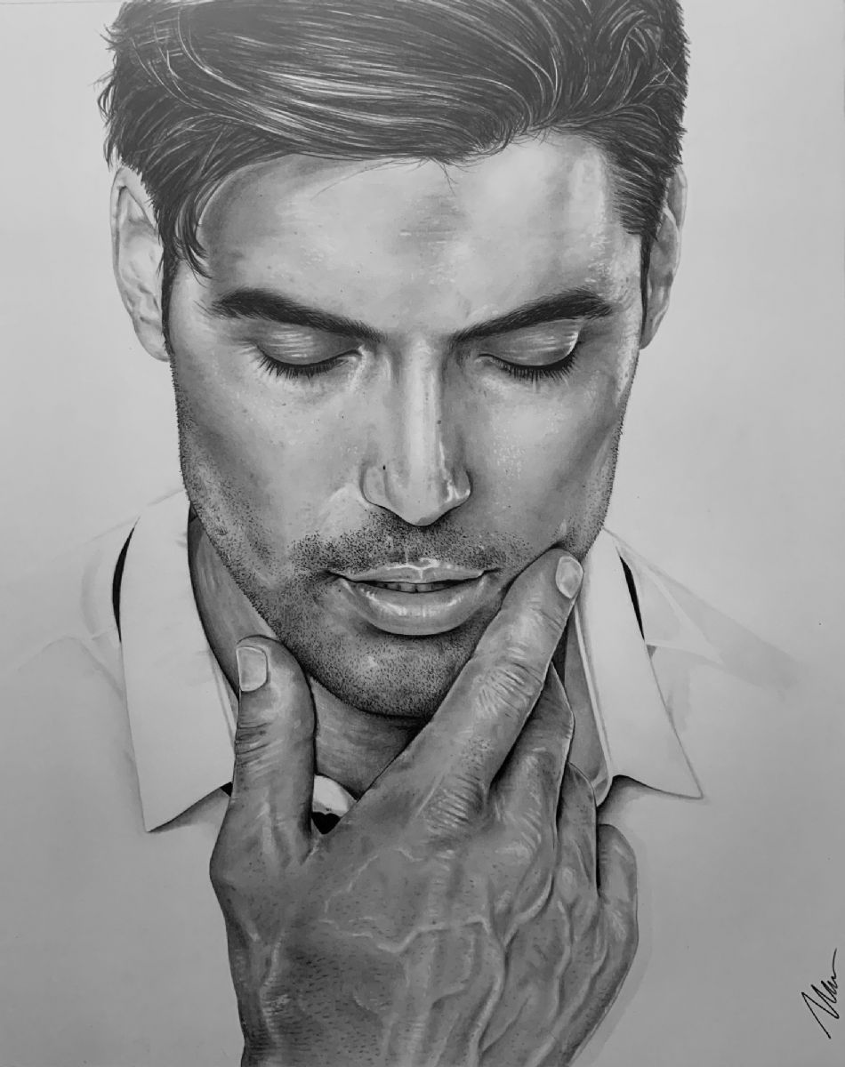 Many of the people I've drawn in this collection are at least somewhat recognizable - actors, models, and recording artists in varying degrees of fame. But this image is a little different, in that Thiago Lazzarato does not fall under any of these categories. He's simply a dad from London who gained a following by posting pictures of his handsome mug (and body) all over Instagram.
