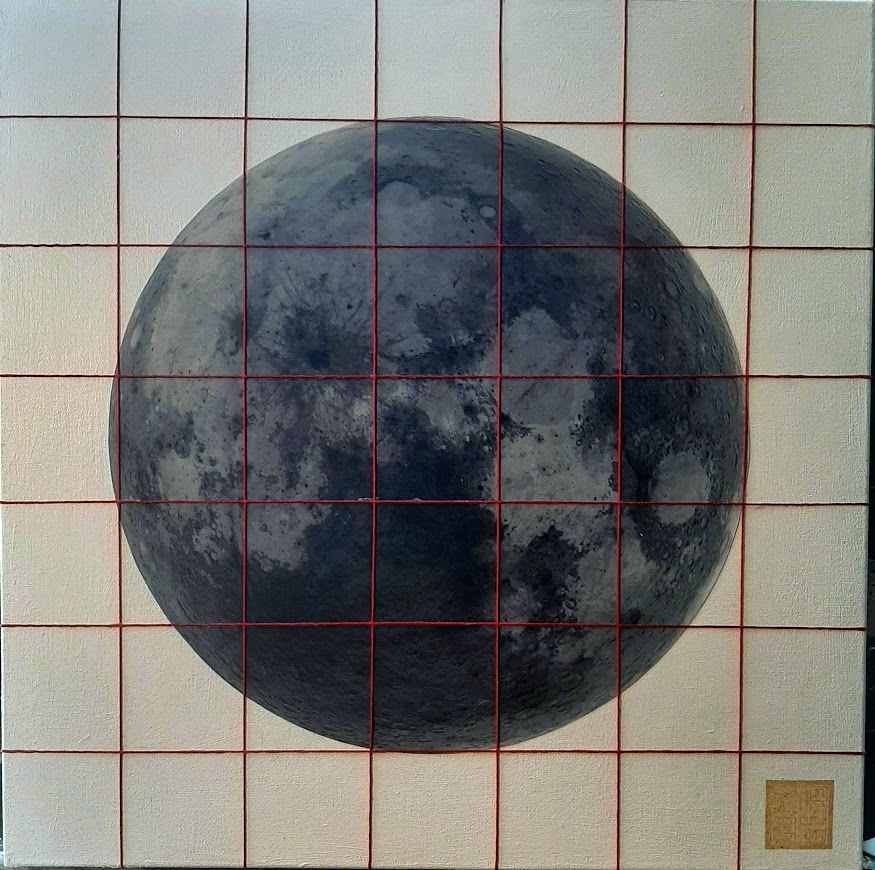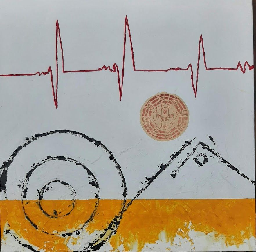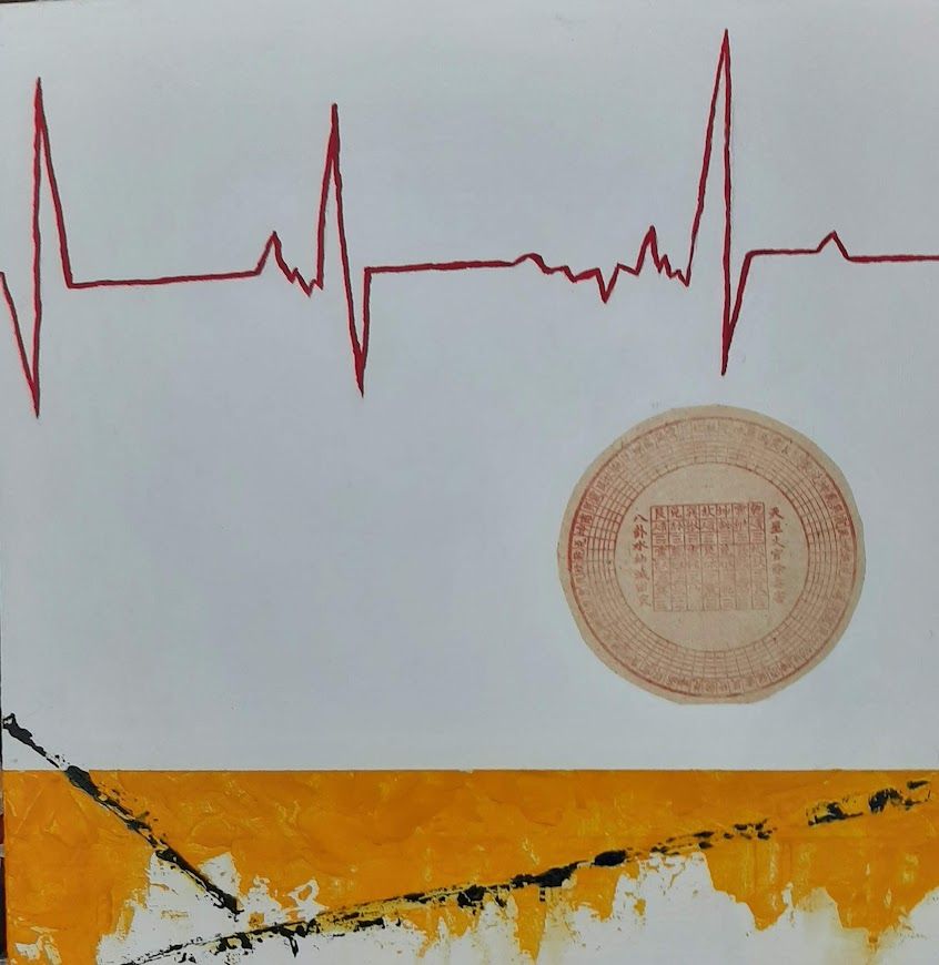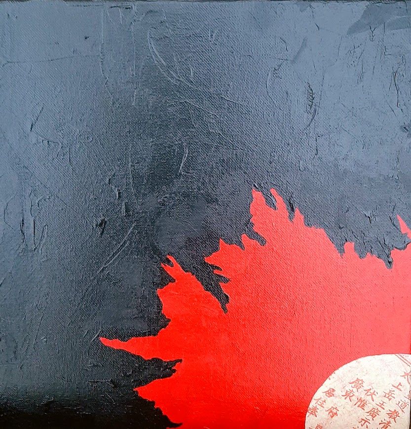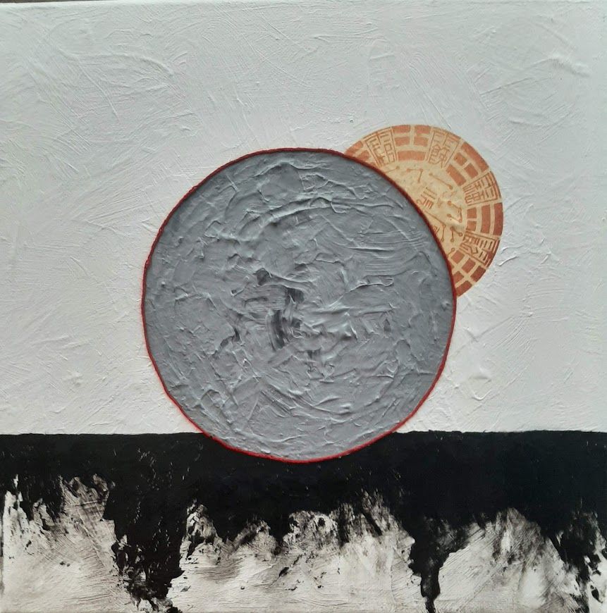 acrylic, fiber, paper, mixed media on canon canvas, $600