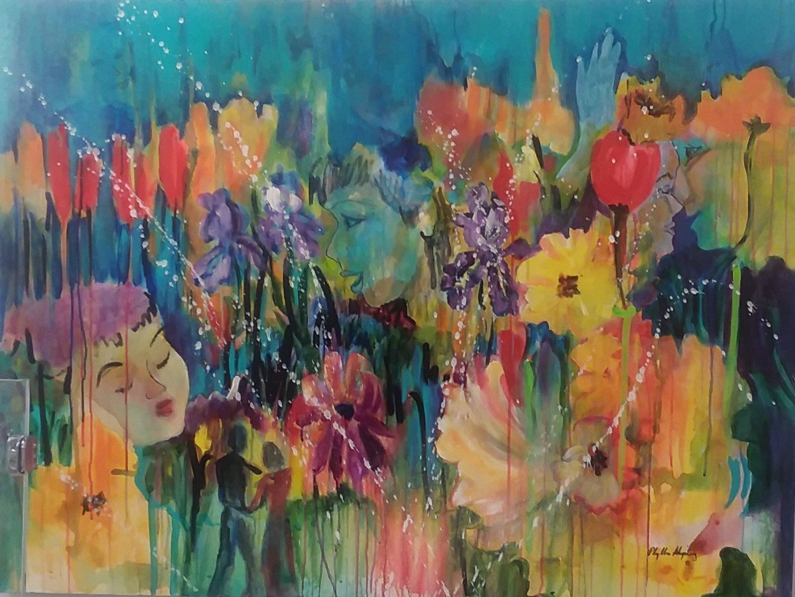 Loving color and the reaction that we get from color always fascinates me and directs me in my paintings. As I began, the young girl decided to be in the painting but with her eyes closed as she dreams of those around her that give her joy. Her delight continues as she lifts her hand, reaching for guidance in her life.