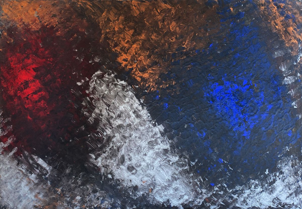 Acrylics on canvas. Abstract yet familiar. painted using fingers to give a repetitious feel.