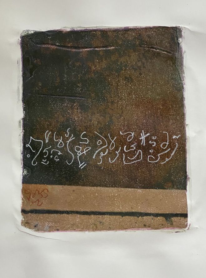 Limited Edition | Photographic monoprint with asemic script , 18" x 24" x 1"