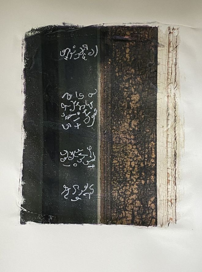 Limited Edition | Photographic monoprint with asemic script , 18" x 24" x 1"