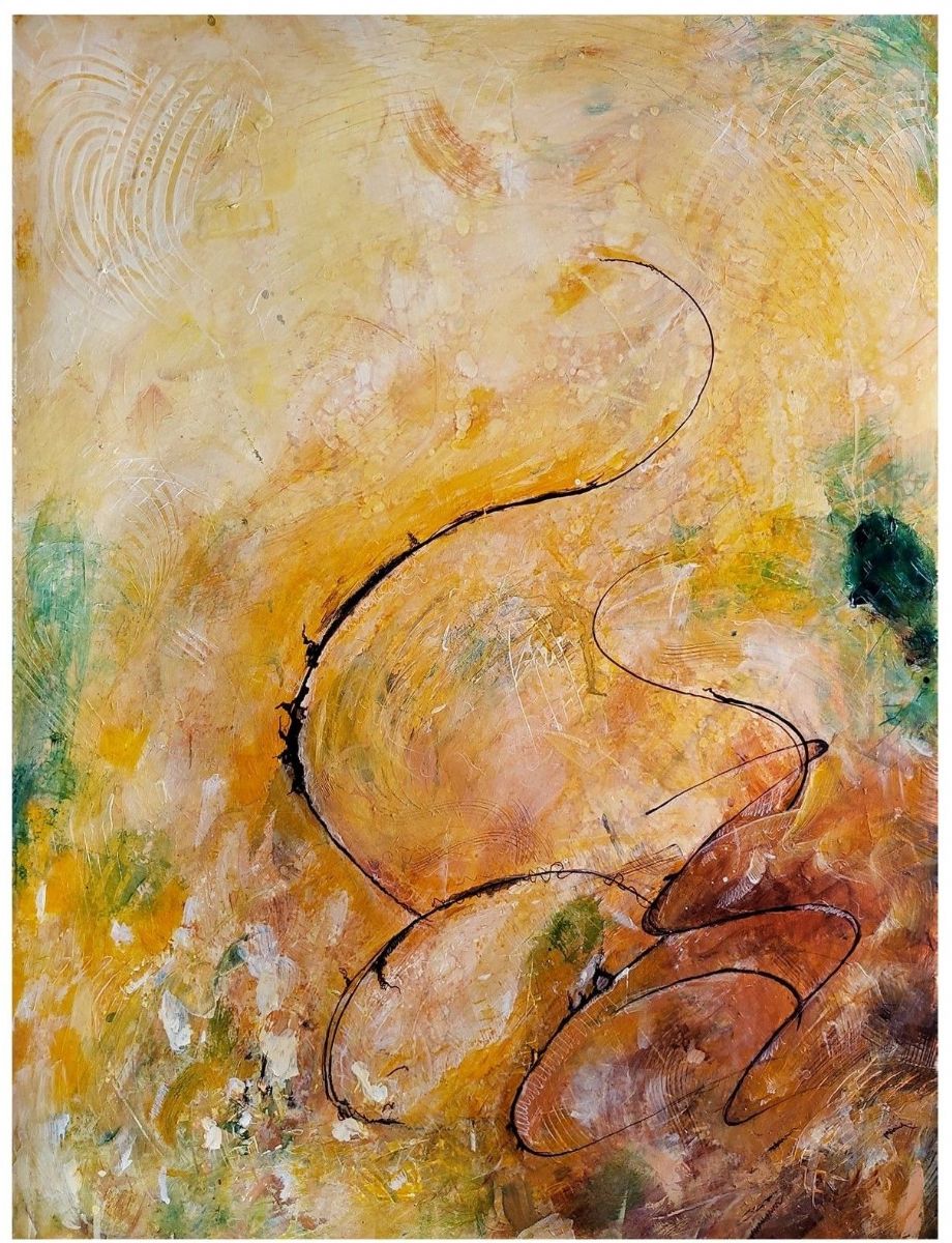 Holding Space was a series of works meant to give you, the viewer, a chance to explore your own responses to color, line, and form - a Rorschach test of sorts. While each piece had meaning to me, as the artist, I avoided sharing that so the viewer could have space to respond on their own. They are painted to feel like abstracted landscapes, but not specific terrain or spaces.