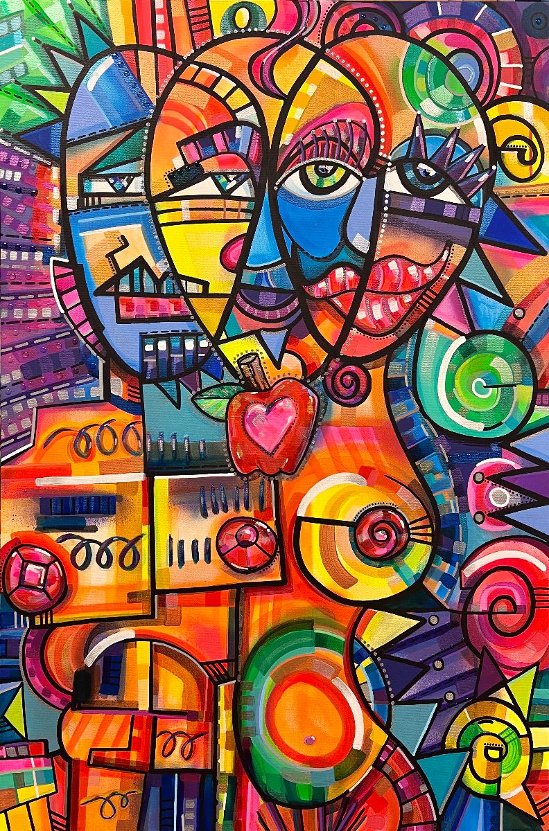 Embrace the Masculine and feminine and wear both on the outside - live the colors combined with both parts of you - The Best of you! Acrylic mixed media on canvas.