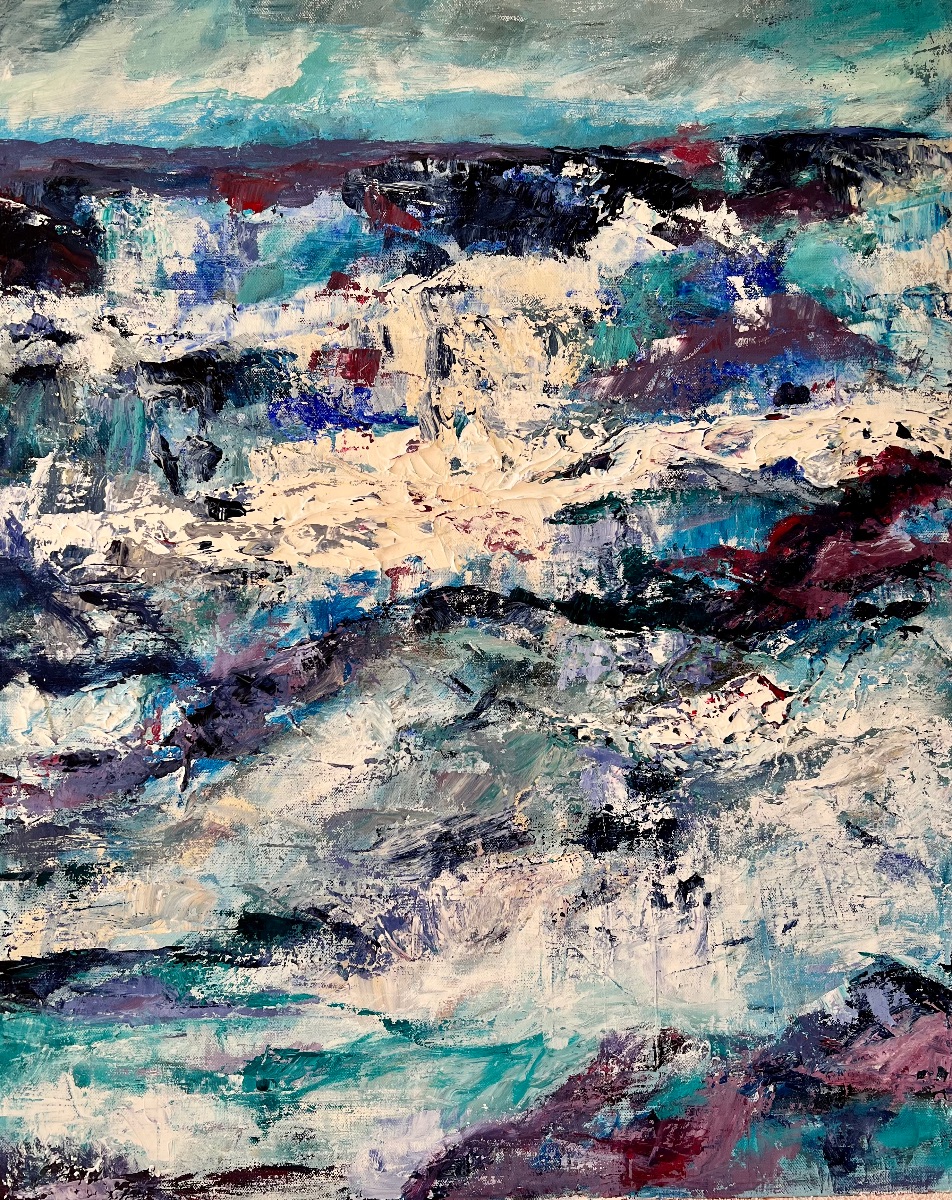 This painting was inspired by many trips to Canada and Niagara Falls. The majesty of the waterfalls nad the rocks.