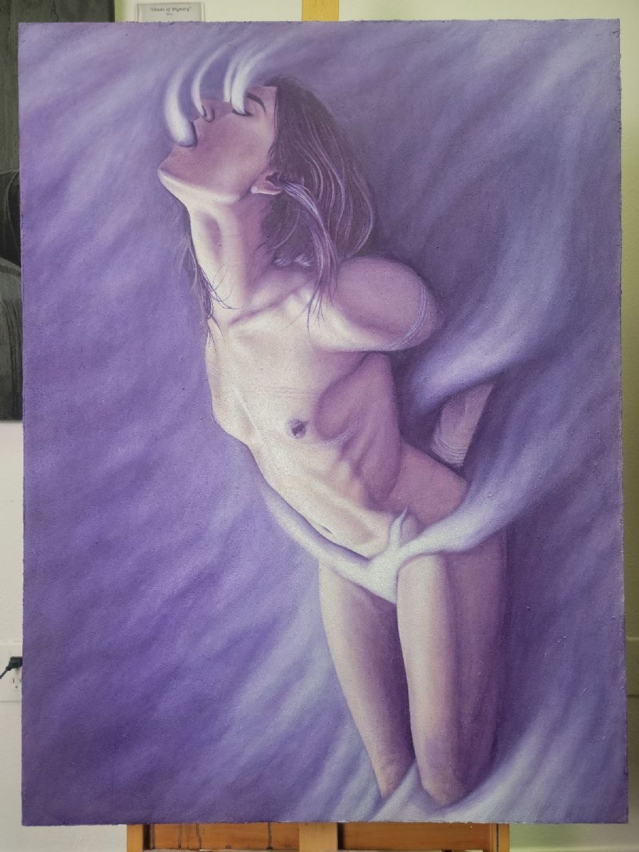 To blisses height freely she soars, her pain lifting her on wing.