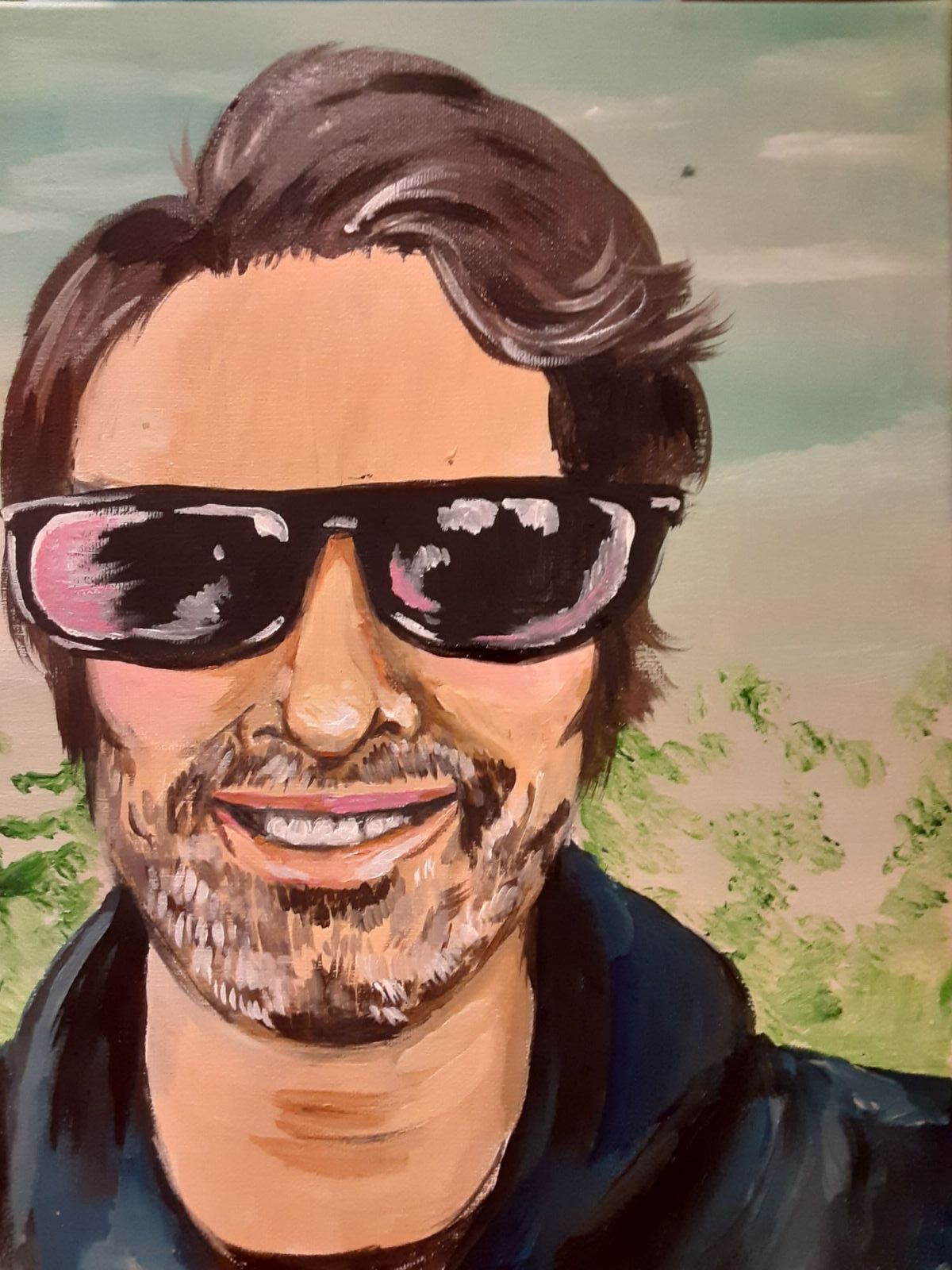Alex DeCourville is an actor, screenwriter, director, and a frequent collaborator and muse for my art. I wanted to capture the joy he displayed at a recent film premier by contrasting the more dull and neutral grays, blues an greens behind him towards a warm pink light in the direction of the viewer.