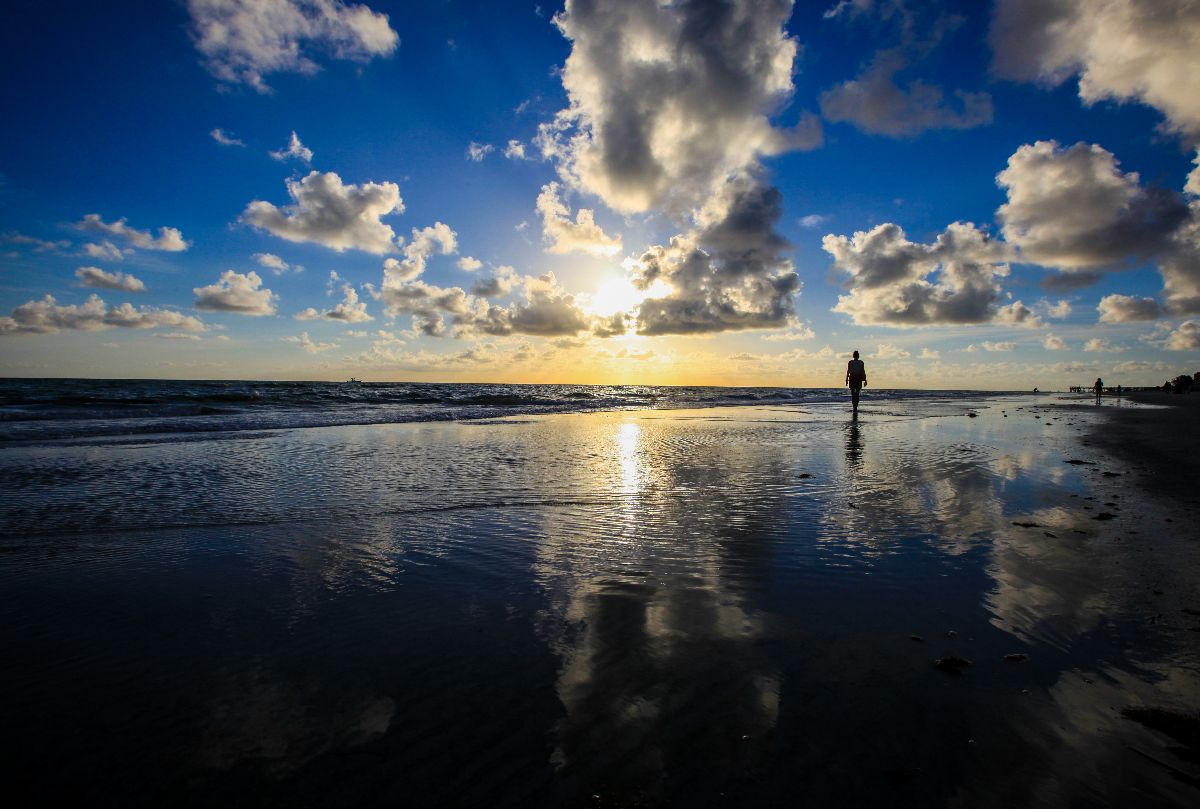 The skies' expanse reflect in the shore to show life's unlimited possibilities even when planted solely in the sand.