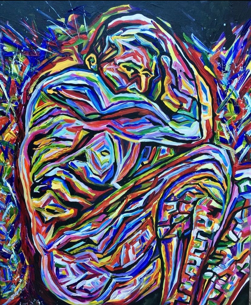 Neon Man Yearns to be seen, fearful, seeking attention, yet hiding. Thrust into panic mode he becomes vibrant in his exterior to camouflage what's inside!