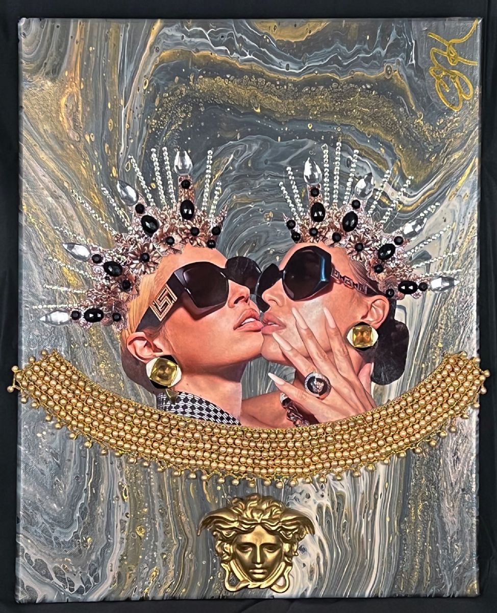 Queen's Versace Love | Mixed media resin on canvas, 16" x 20" x 1"
