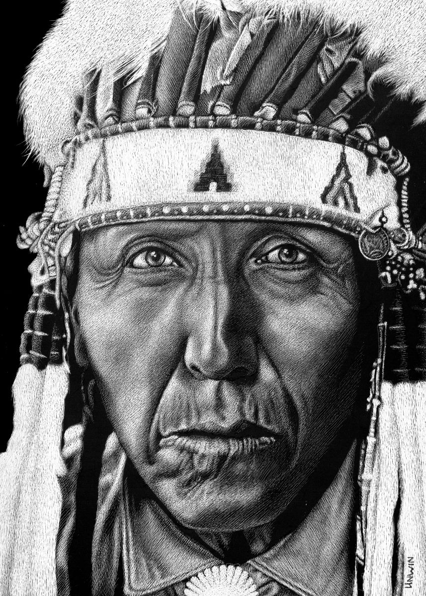 The artwork is created on Ampersand Scratchboard, Scratchboard, a form of direct engraving where the artist scratches off dark ink to reveal a white layer beneath. Scratchboard refers to both a fine-art medium, and an illustrative technique using sharp knives and tools for engraving into a thin layer of white China clay that is coated with dark, often black India ink. When scratched, exposes the white surface beneath. Scratchboard can be used to yield highly detailed, precise and evenly textured artwork. Works can be left black and white, or colored.
