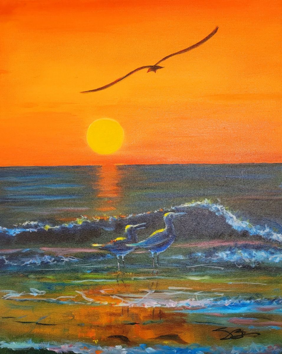 Iridescent Shorebirds | Oil on Canvas, 16" x 20" x 1"